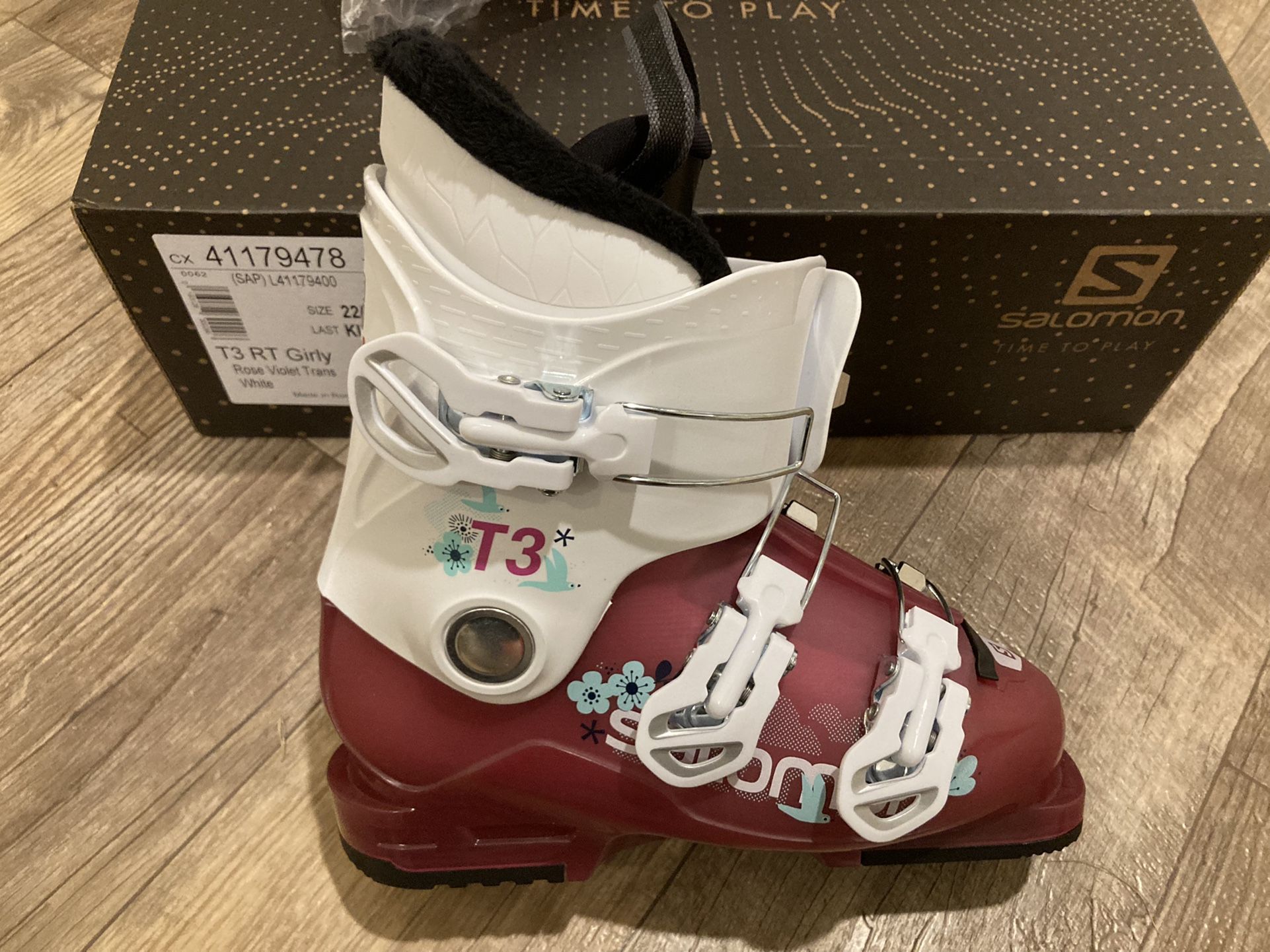 Salomon T3 RT Girly Ski Boots Size 22/22.5 Rose Violet Translucent color New in box, never used. https://offerup.co/faYXKzQFnY?$deeplink_path=/redirect/
