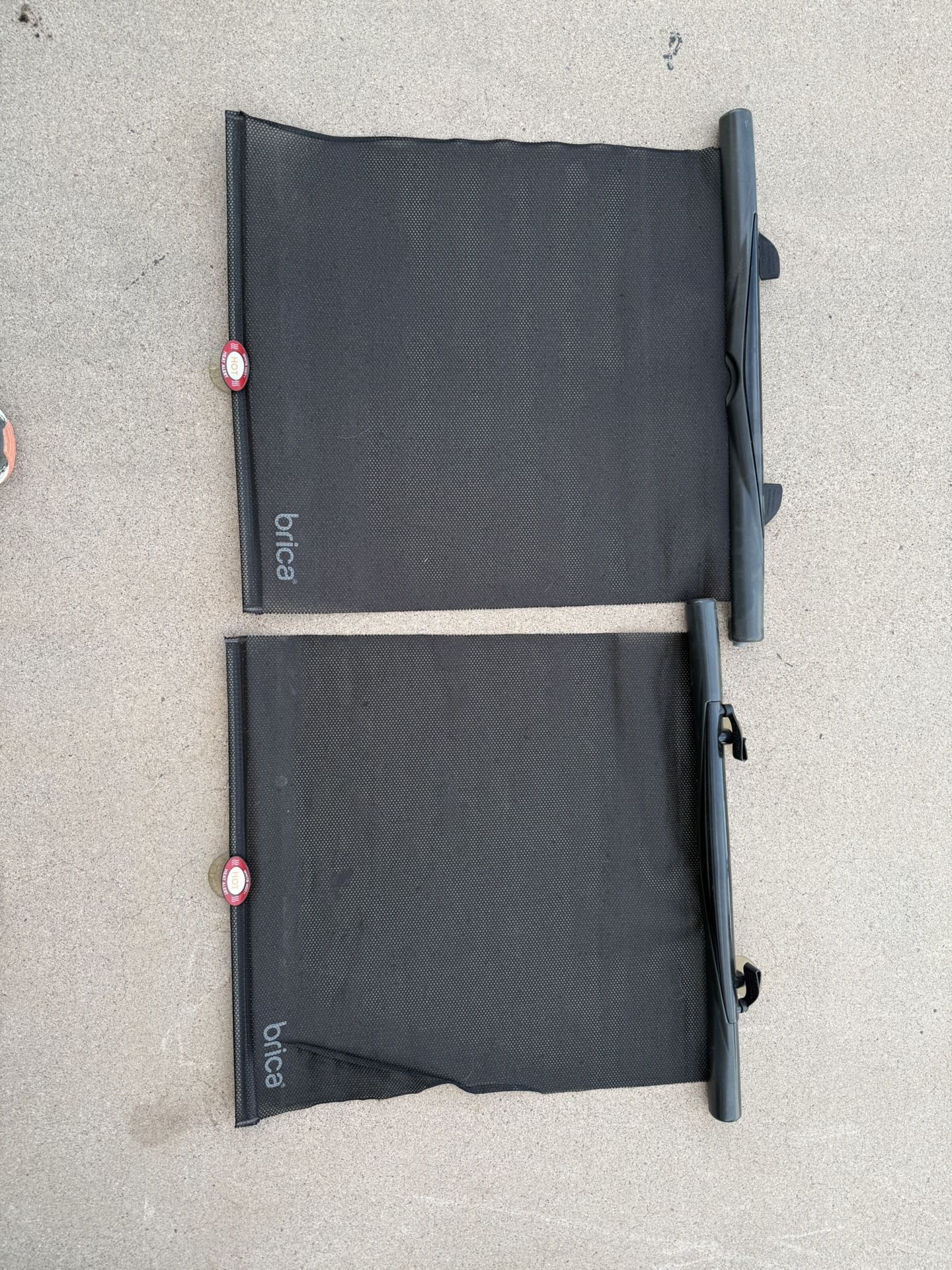 2 Brica window shades for back windows. Easy contract and pull for use.