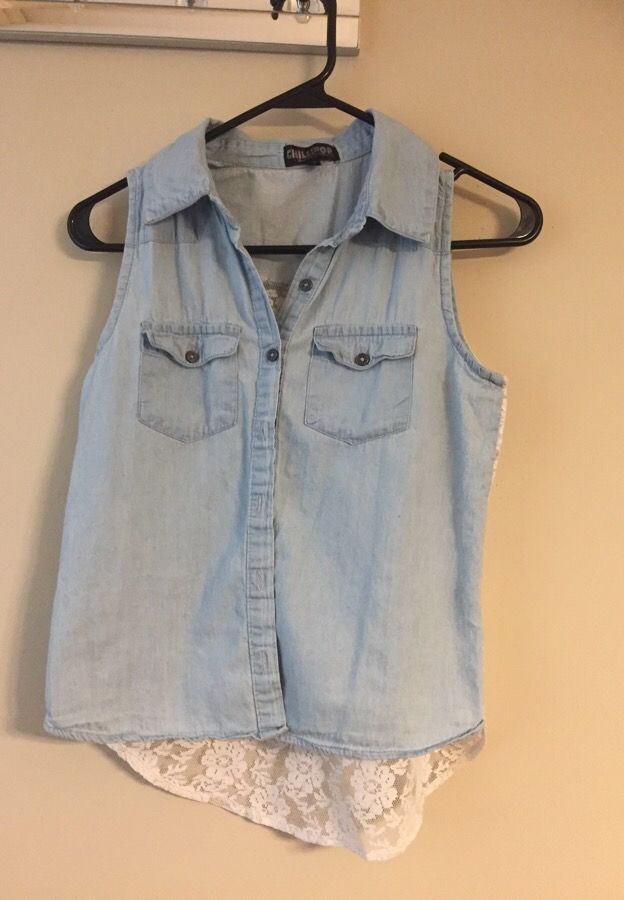 Girls size 14/16 jean sleeveless (lace back ) shirt. In great condition