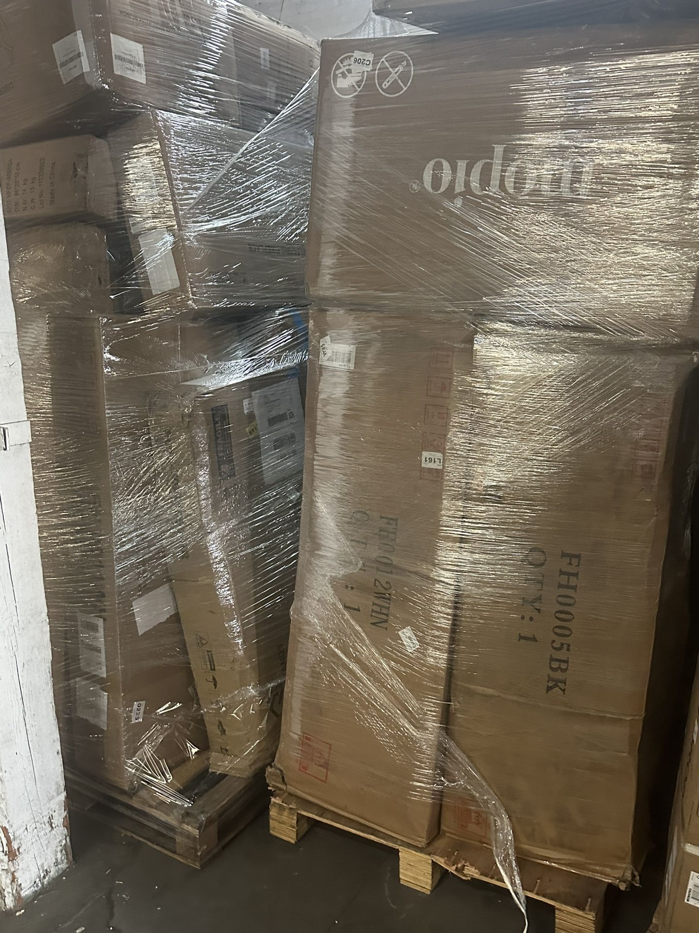 Return pallets of indoor products We have a range of products, best to come see in person Our trailers consist of the following … Couches, Accent chairs,/gaming chairs, electric and non-electric recliners, cabinets, tables, icemakers, beds, mattresses, electronic, gun, safes, and much much more !!! Price can be negotiated when purchasing a half or a full trailer Our trailer loads come with 26 four pallets, 7ft+ high