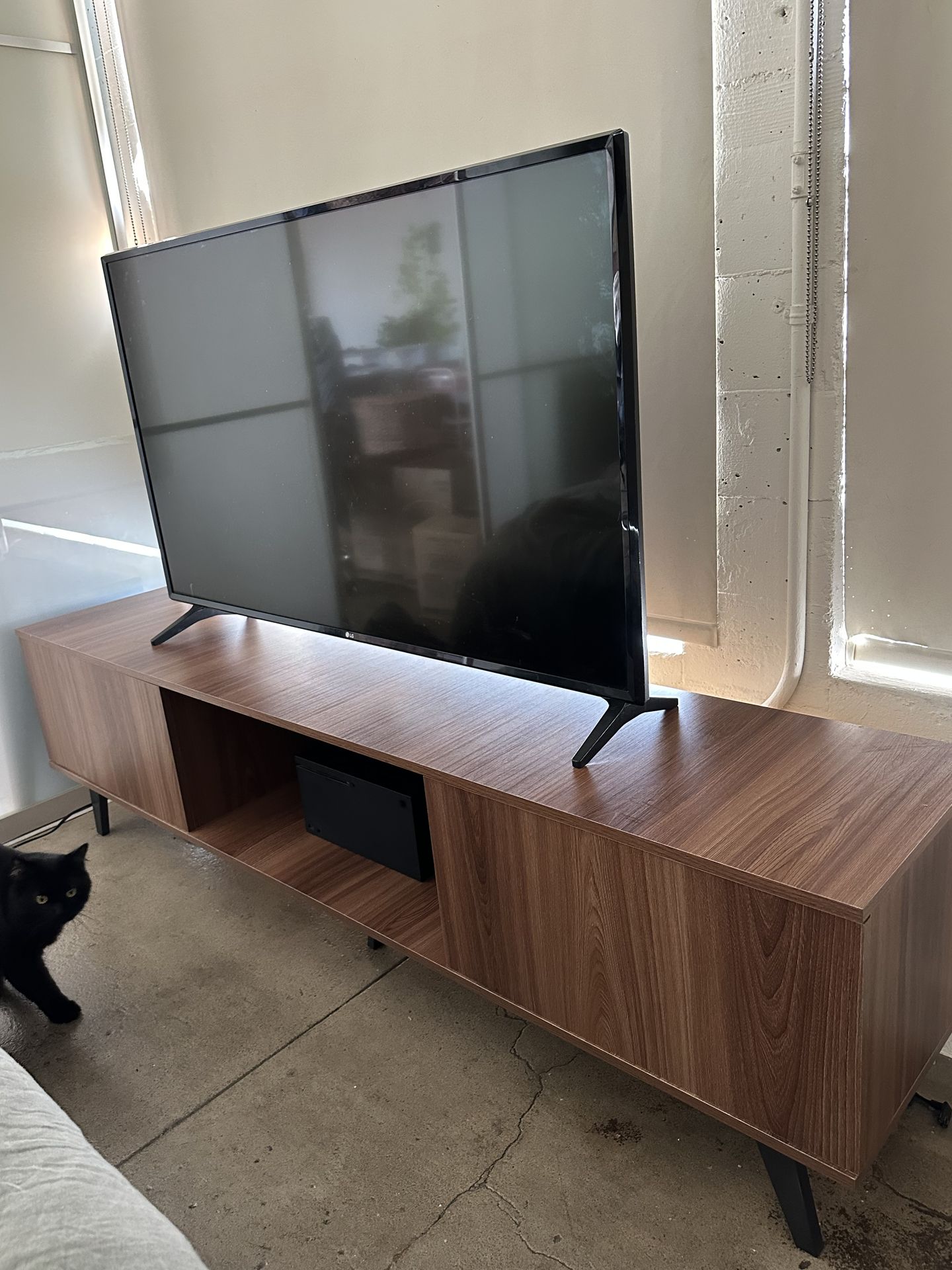 beautiful low rise, wood finish, modern media console. like new condition, perfect for electronics storage and tv arrangements priced to sell - message for pick up