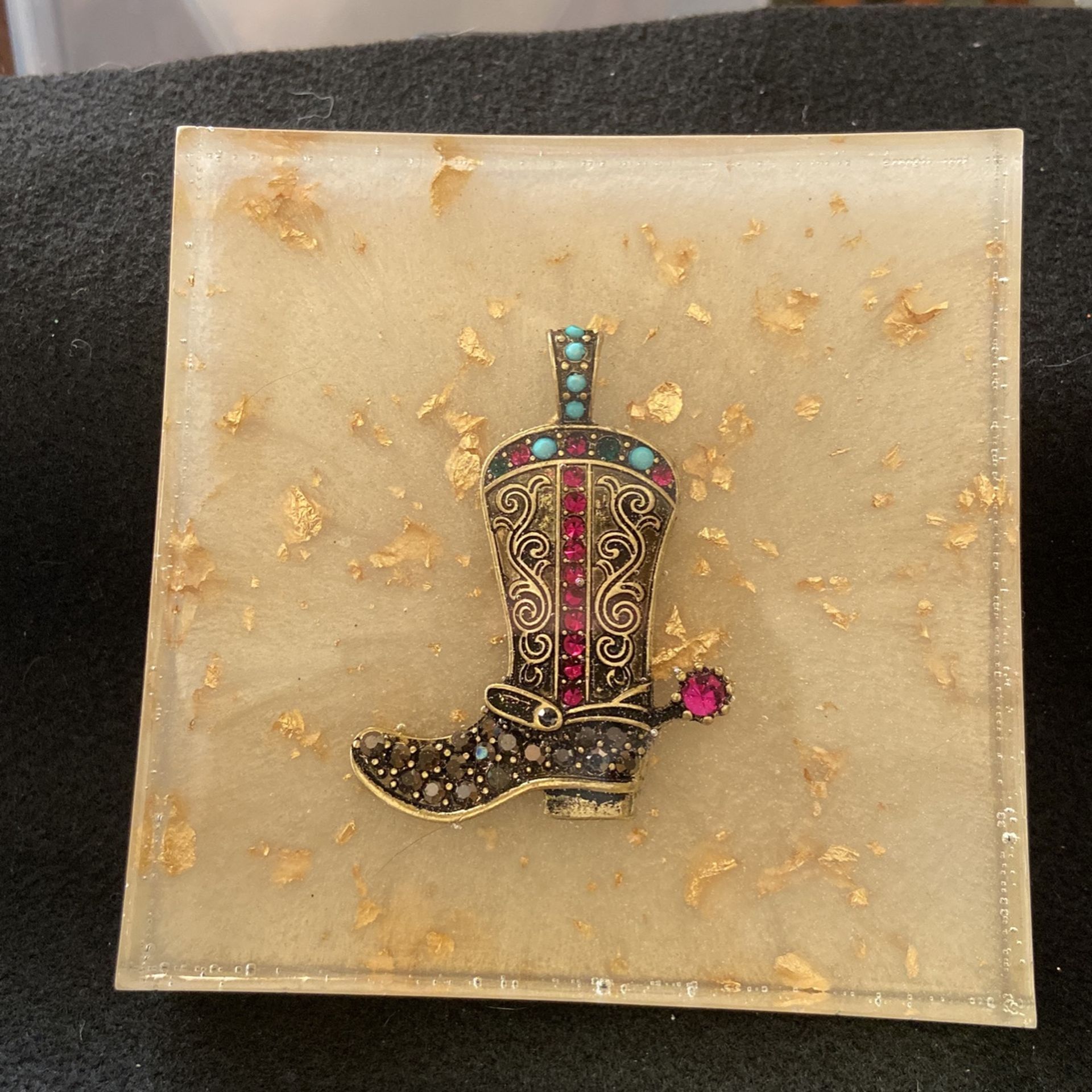4x4x1 Made of Apoxsee resin metal boot with stones