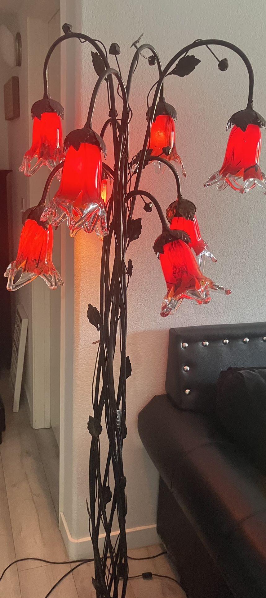 French Art Deco Stl Handmade Wrought Iron floor Lamp 9 Red Blown Glass Shades $200 OBO