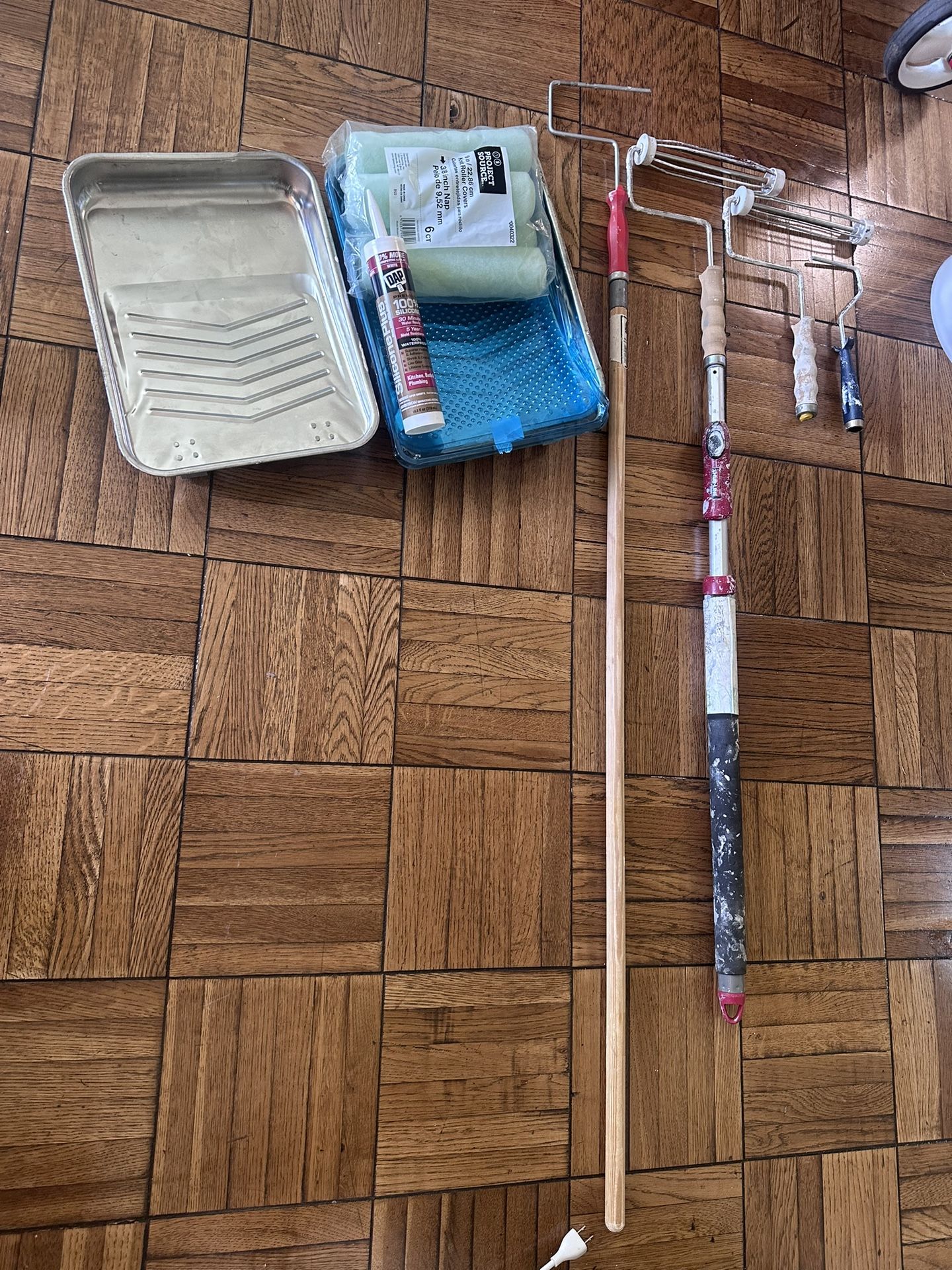 2 painting extension pole. 5 roller covers. Silicone, 4 roller, 2trim with cover