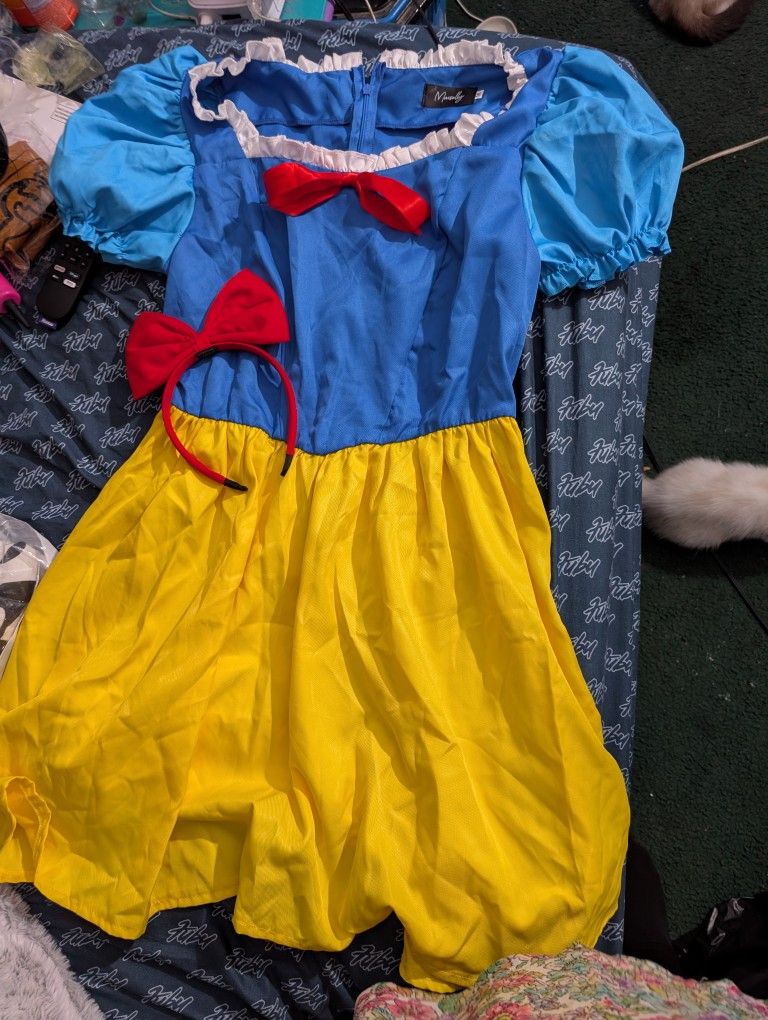 Snow White Costume With Red Bow Headband Adult Size Medium