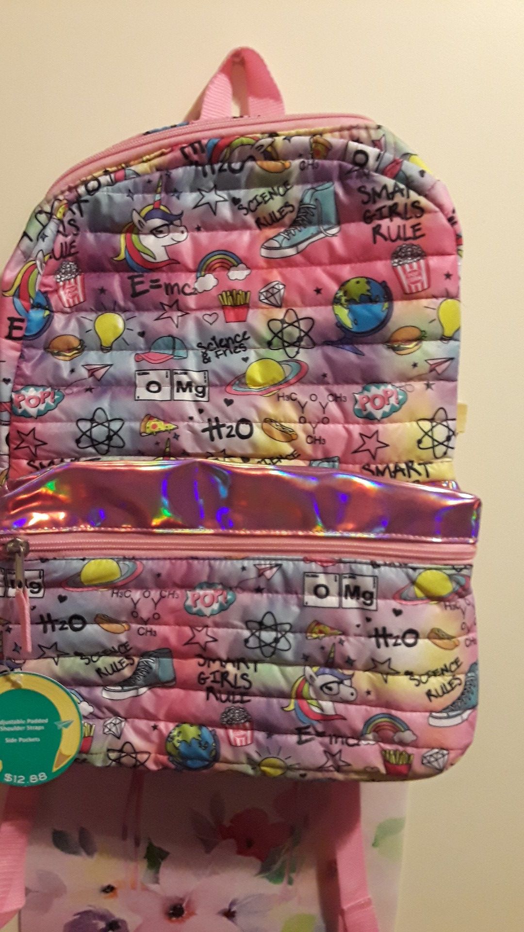 Brand new with tags full sizes pink backpack asking 10 pick up only