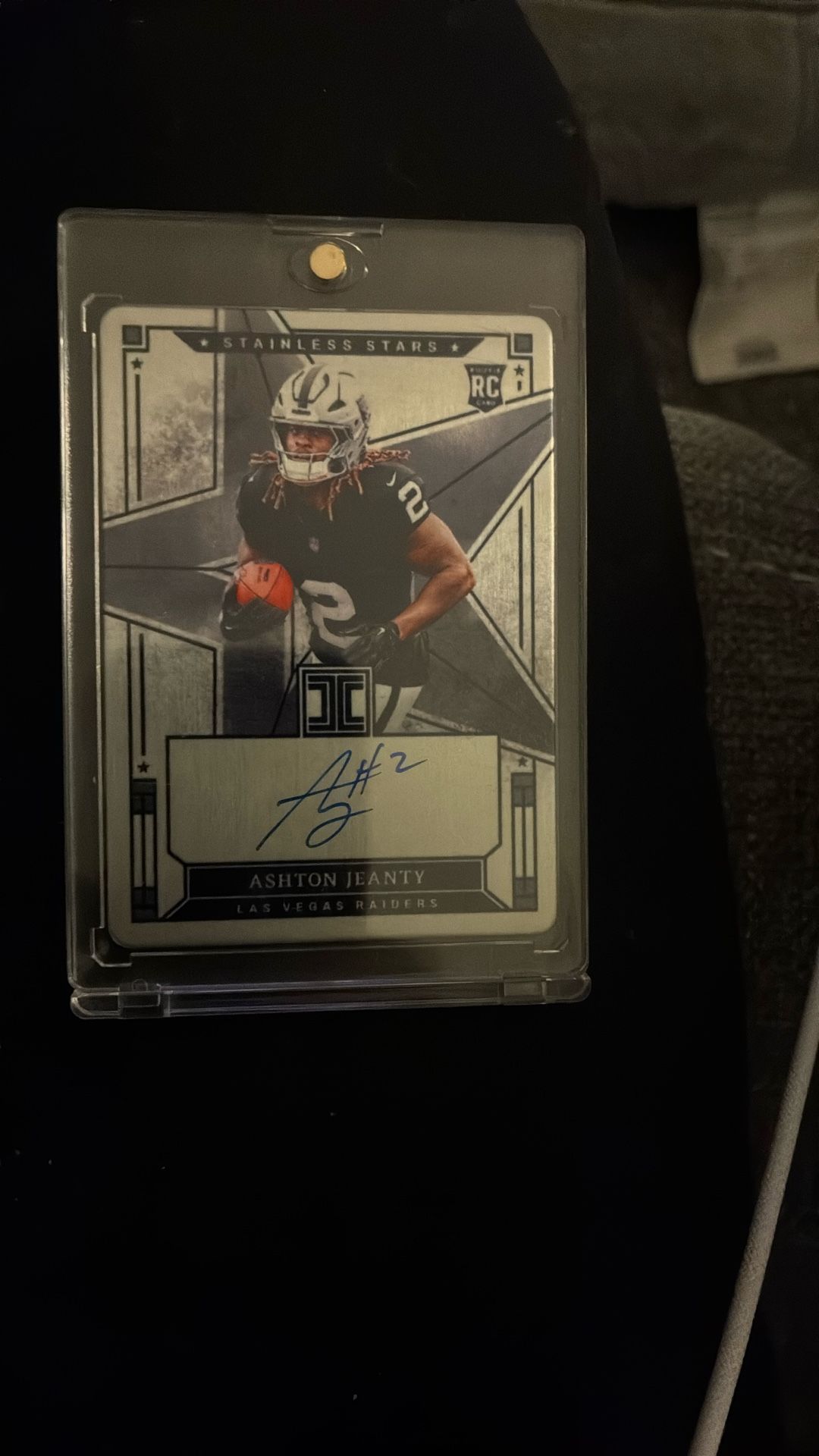 2025 Paninni Impeccable Ashton Jeanty 48/99 Stainless Steel Signature Rookie Card.
