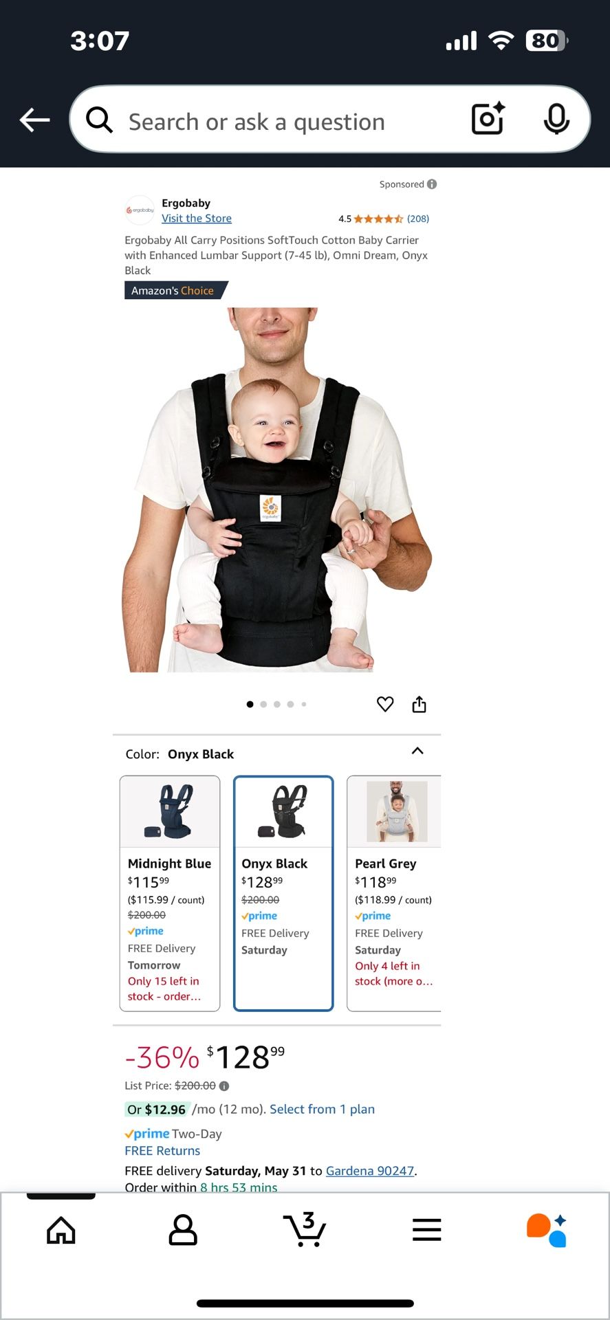 Ergobaby carrier 7-45lbs Warned/used but very good condition Asking price 60$