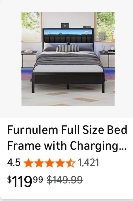 Brand new, never opened full size headboard and bed frame with LED lighting and charging outlet within unit. This was ordered from Amazon and they sent an extra one. Original price is $119, I’m on asking for $50. Come get it.