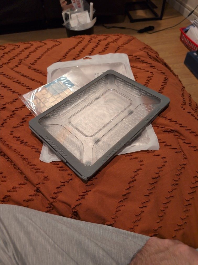 Brand new. Got two from Amazon, selling this one. Includes free silicone keyboard cover.