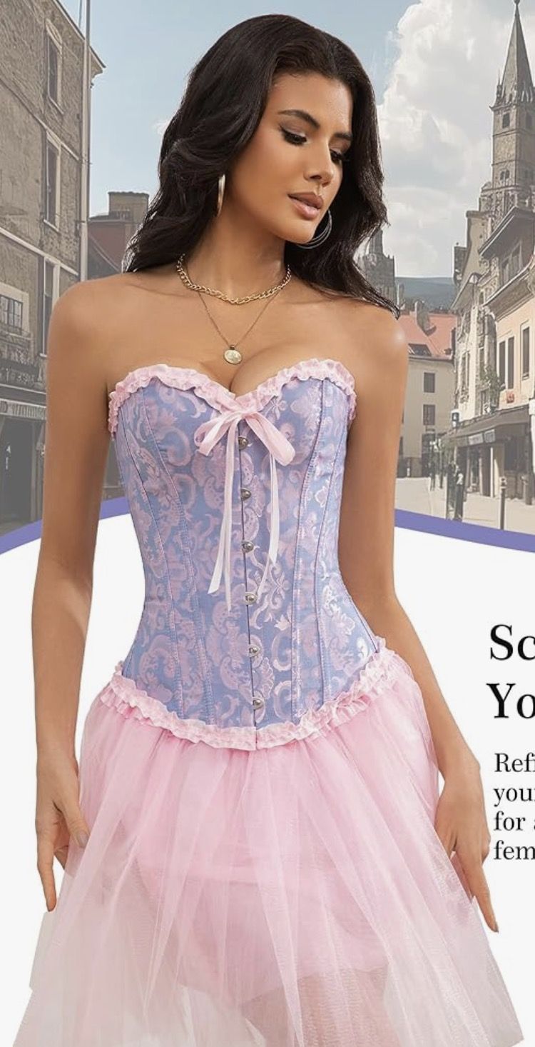 Medium blue pink Bustier Corset Top for Women | Overbust Lace Up Waist Cincher Shapewear Lingerie
