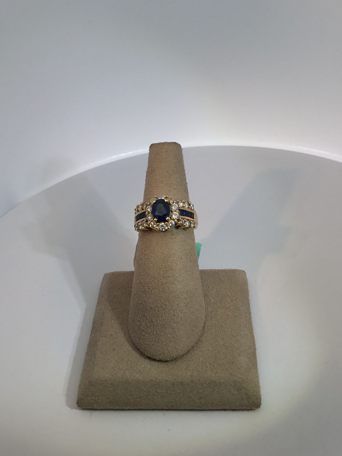 18K Yellow Gold Lady’s Sapphire With Diamonds Elegant Ring Size 6