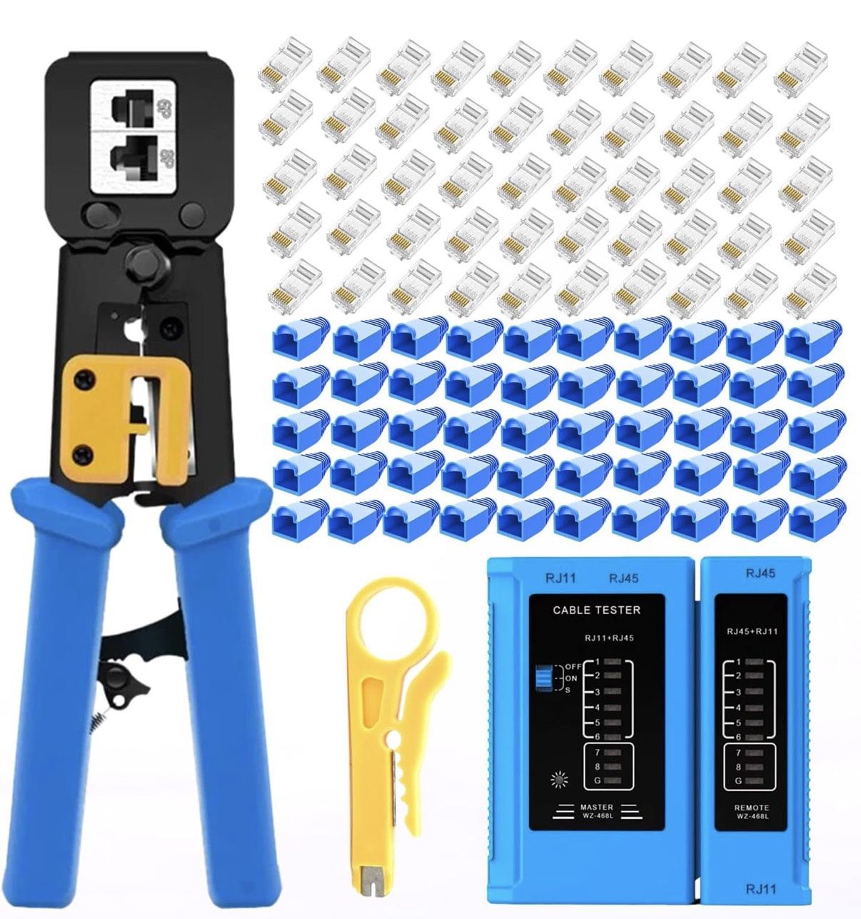 RJ45 Crimping Tool for Cat6/Cat5e 50 Pass-Through Connectors & Tester