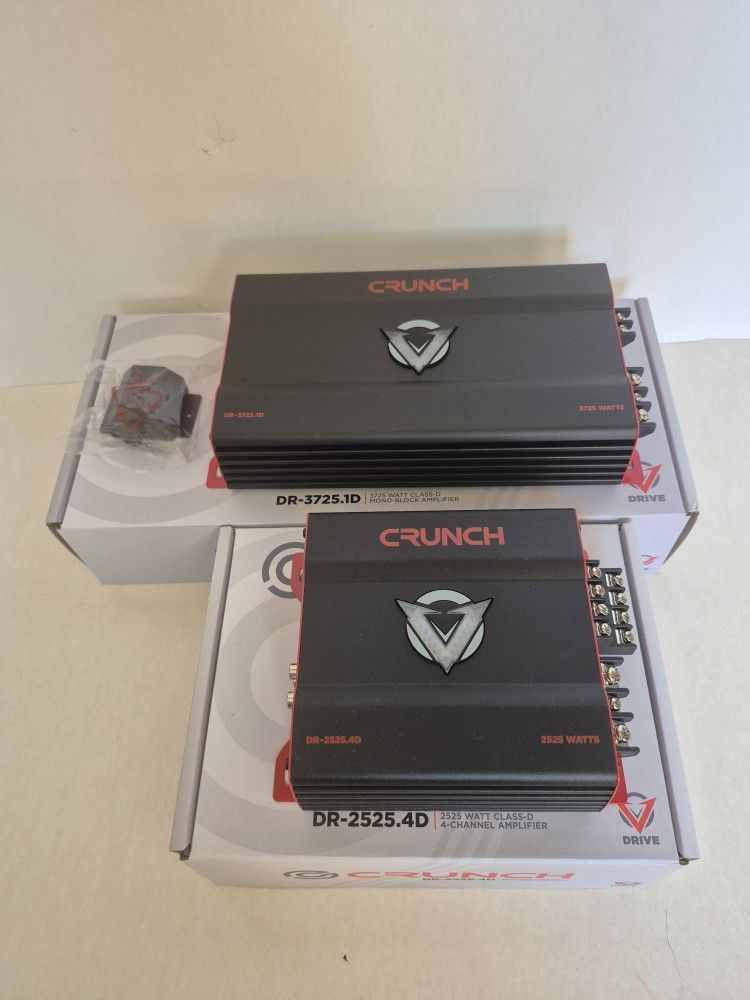 CRUNCH 3725 WATTS MONOBLOCK 1 OHM STABLE BUILT IN CROSSOVER WITH BASS CONTROL & 2525 WATTS 4 CHANNEL BUILT IN CROSSOVER CAR AMPLIFIER