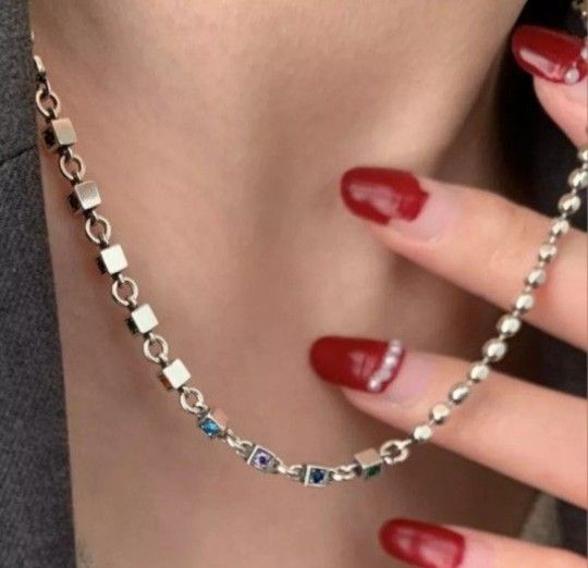 925 Sterling Silver Color Stones Unisex Necklace Chain Gift