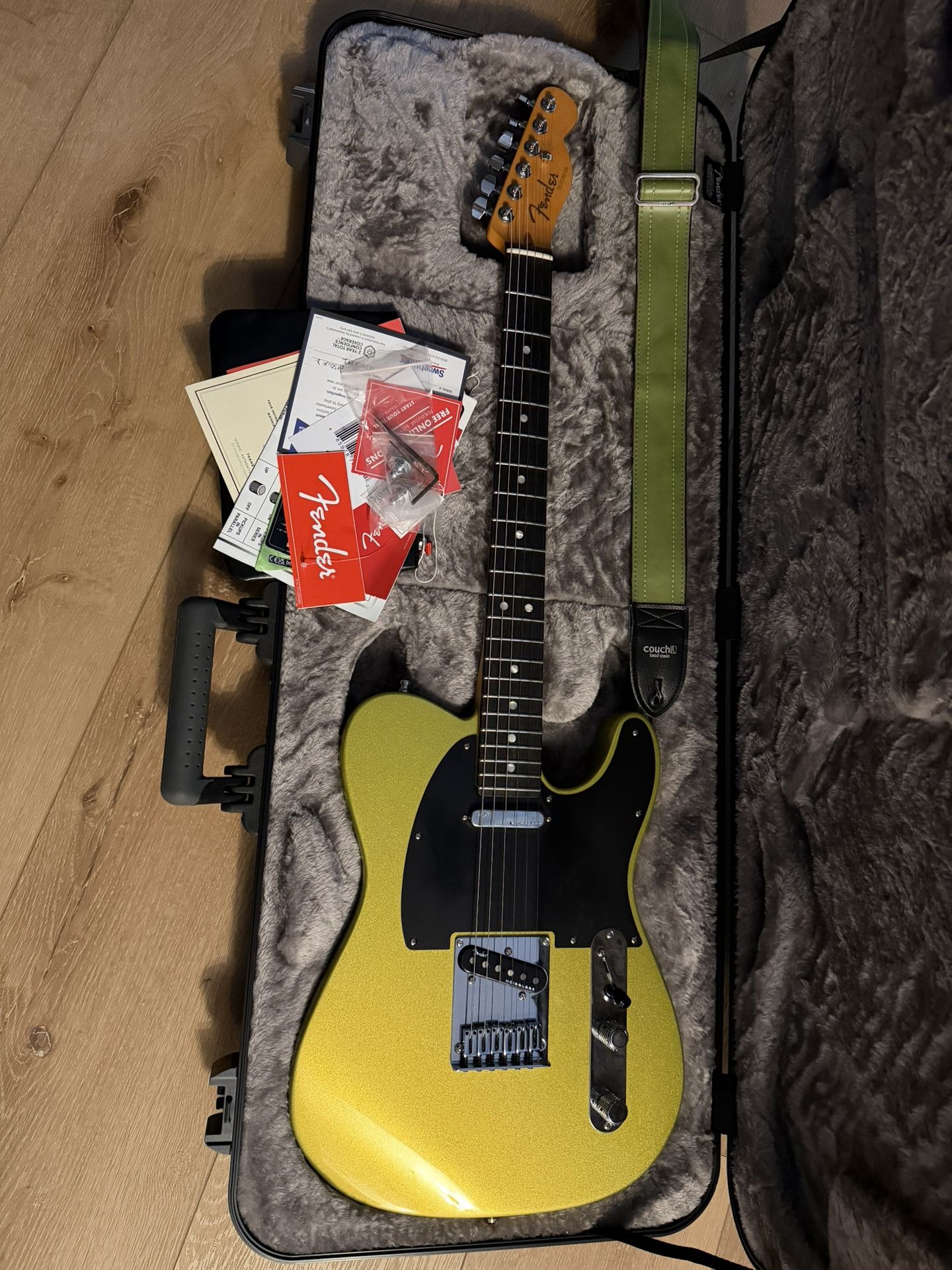 USA Fender American Ultra 2 Solar Flare Telecaster. Awesome guitar, like new. I bought it from sweetwater earlier in the year and as much as I like it, I need to make room for a different guitar I just got. This guitar feels and plays great. The neck is one of my favorites, very comfortable. It feels worn in even though it’s basically new. It comes with a really nice fender case, all the paperwork and fender stuff, plus a green couch strap. I’m firm on the price, it’s a great guitar and a it’s a fair price. Check out my other listings.