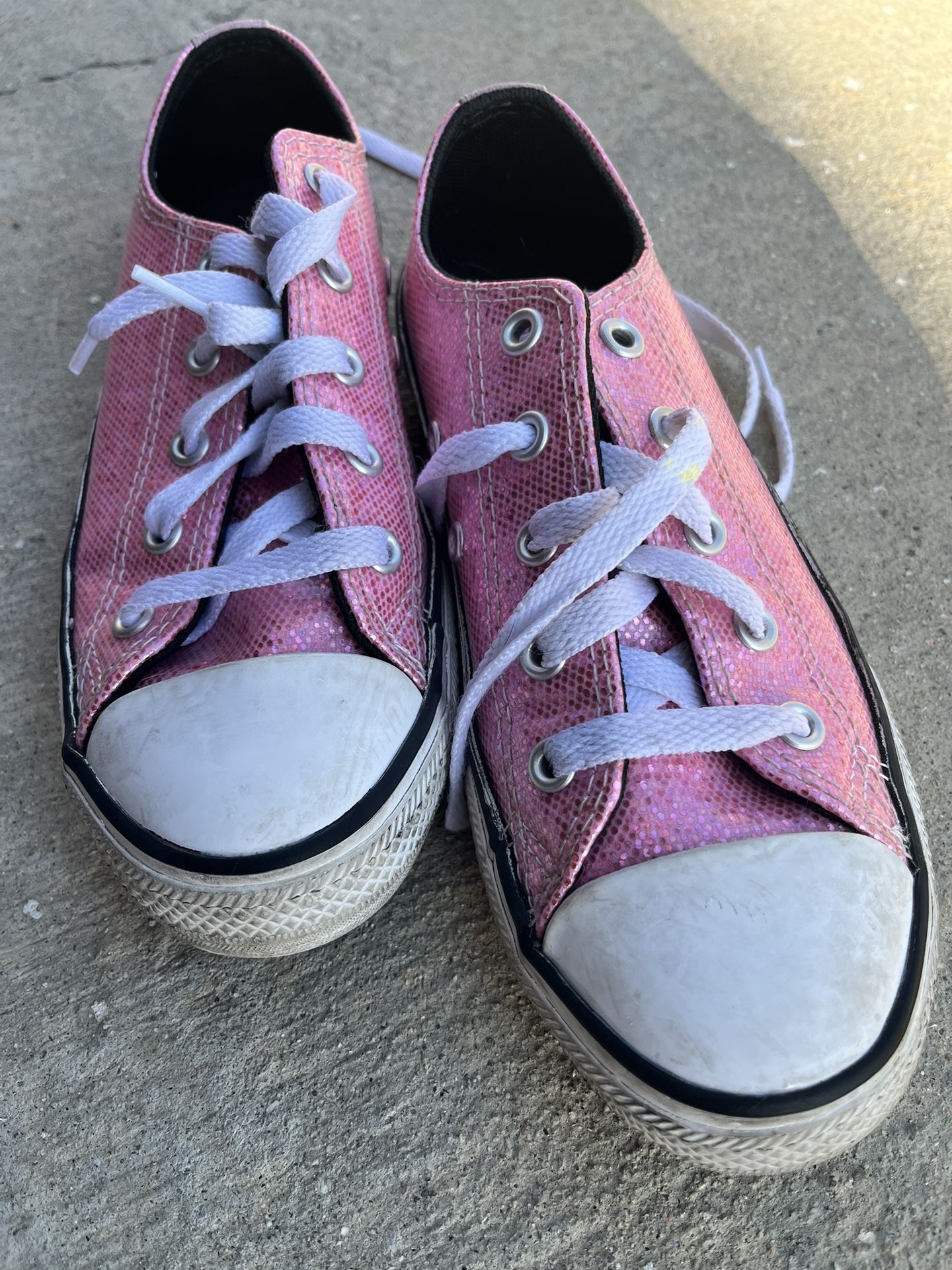 Pink Glitter Sz 1 converse , slightly used , good thread on soles , no holes or rips : make offer