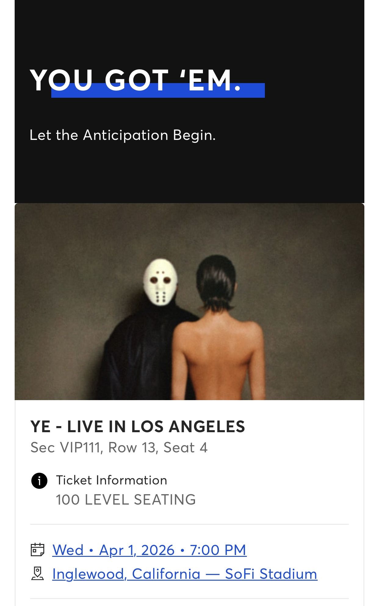PREMIUM VIP KANYE WEST CONCERT TICKETS 2026
