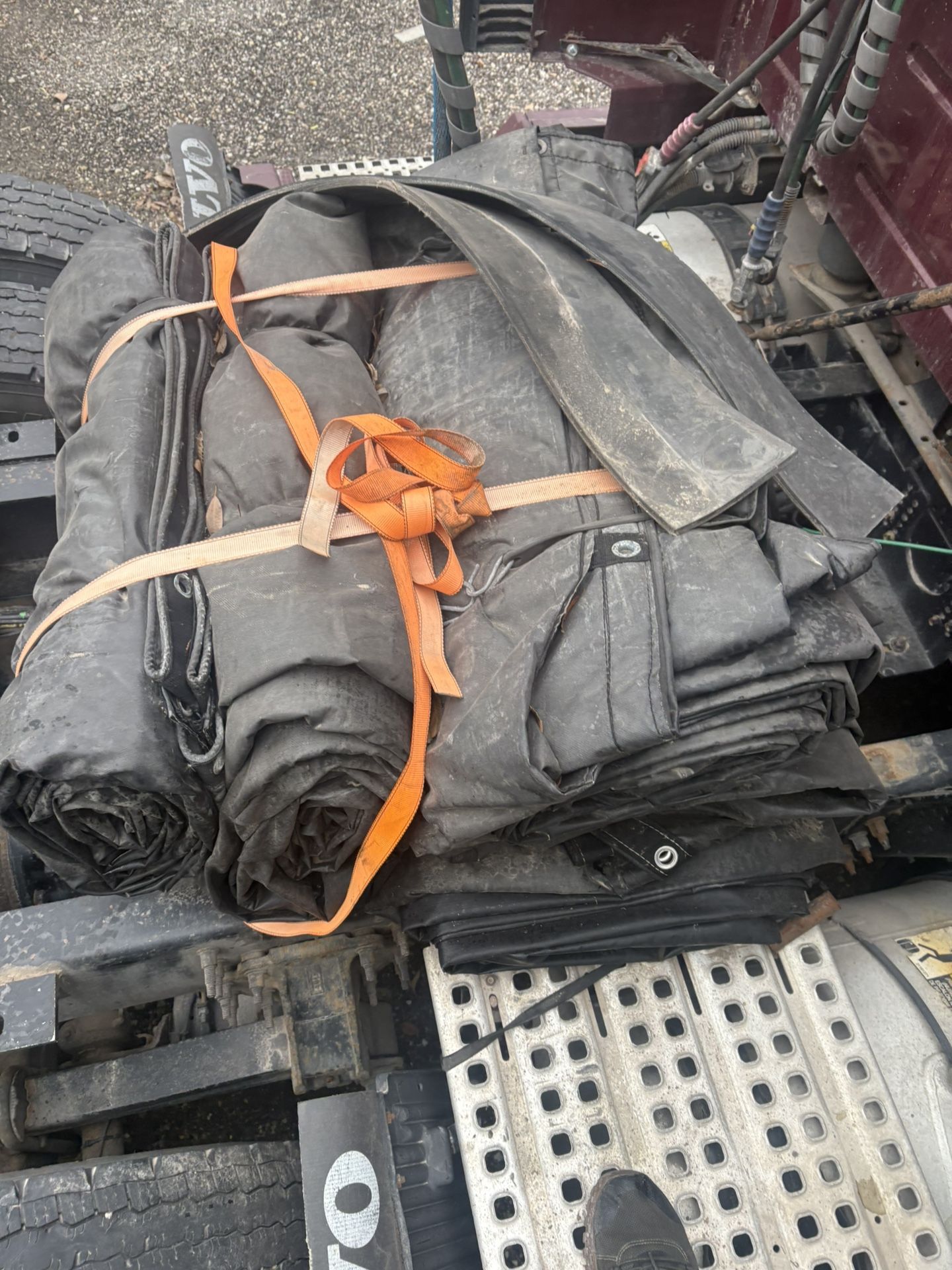 Flatbed tarps 2 tarps are 8 foot drop by 27 long with flaps. Other 2 are 6 foot drop by 27 with flaps. 8 footers were used few times. The 6 footers were used regularly and have patches and few small holes. $250 for everything