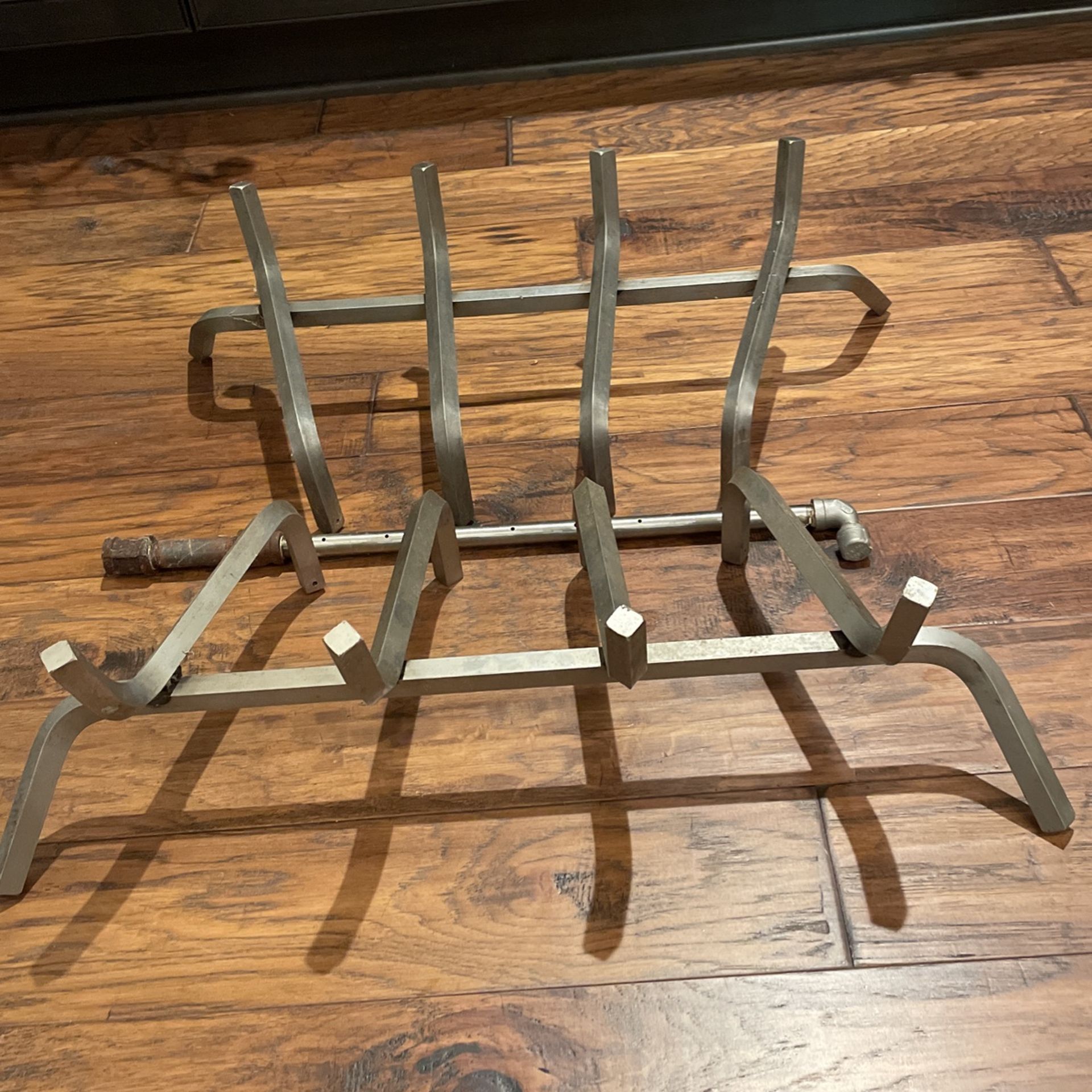 Fireplace grate 26” x 3/4” with log burner pipe. Traditional I think this is iron. Heavy duty. The pipe measures 23” x 3/4 “. Never used This is solid! Selling complete