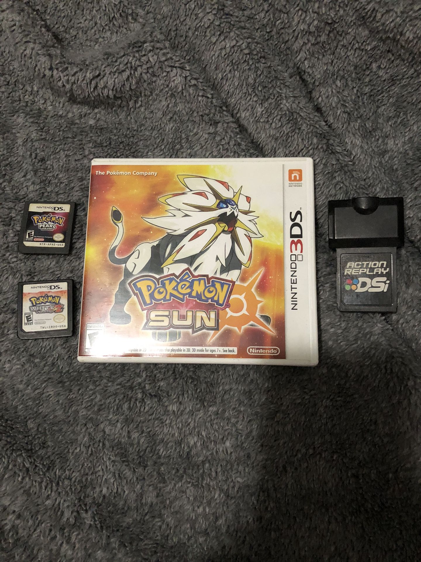 Pokémon Games and Action Replay Pearl- 60 White 2- 100 Sun with Case- 40 Action Replay DSi- 50 All Together- 210