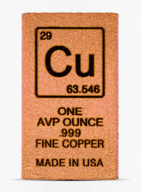 Copper Bar – Element Design, 1 Ounce, .999 Pure Copper The Copper Element Bar is struck from .999 fine copper and weighs 1 avoirdupois ounce. Its design is styled after the periodic table of elements, featuring the copper symbol (Cu), atomic number (29), and atomic weight (63.546). Fast Shipping These copper bars are made in the USA and are a popular, affordable way to diversify into physical bullion. Bar Highlights Mint Facility: Made in USA Purity: .999 Fine Copper Bar Weight: 1 Avoirdupois Ounce Quality: Bullion Design: Periodic table element theme with Cu symbol Fast And Free Shipping
