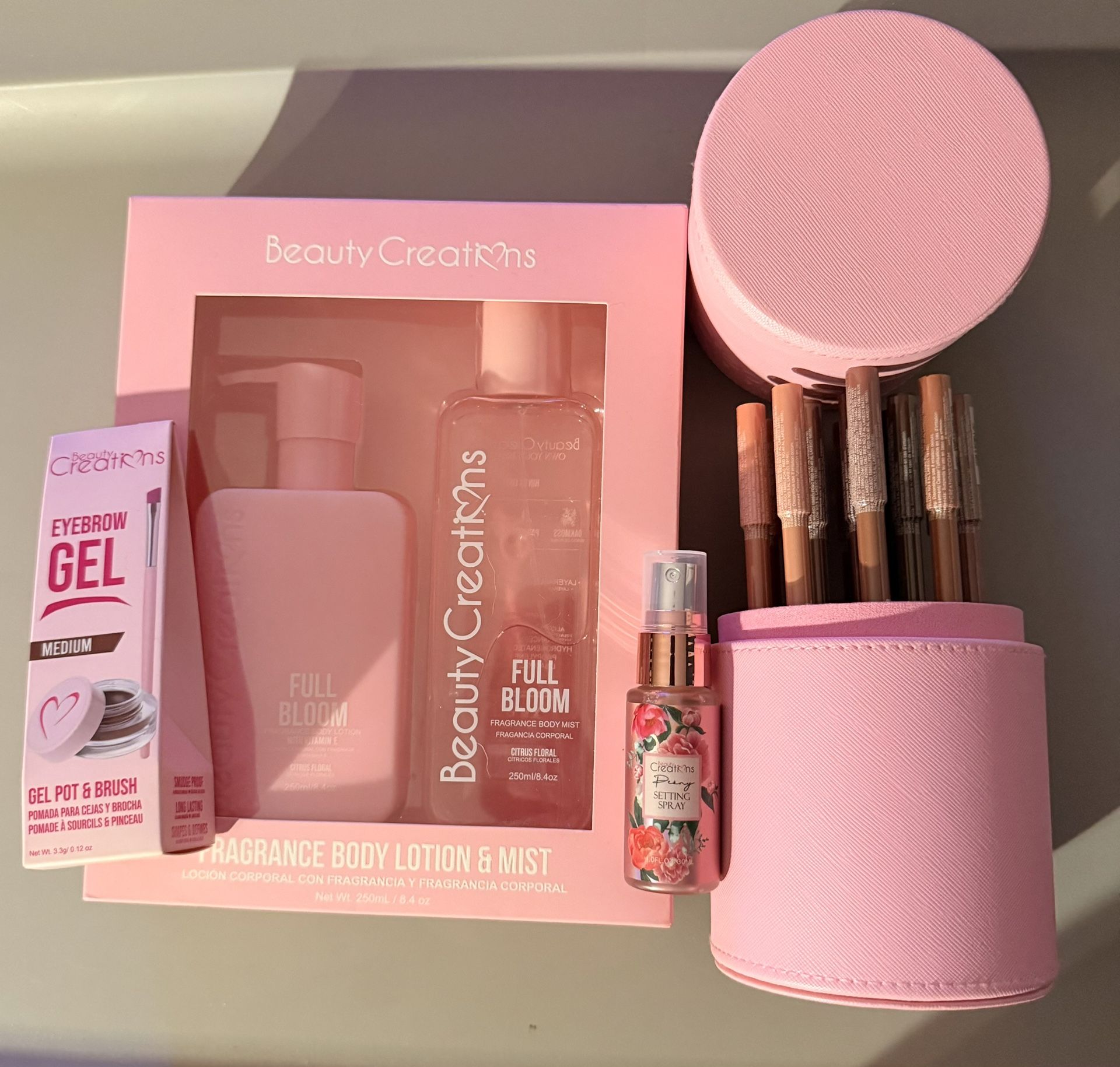 Great Christmas present! Bundle includes Eyebrow gel Medium brown - $8 Setting Spray - $5 Fragrance body lotion & mist (citrus floral) - $15 16pcs Wooden lip pencil in storage box - $20 12pcs Wooden lip pencil - $18 Fragrance body lotion & mist to choose from Citrus Floral (pink) Woody Floral (brown) Citrus Floral (purple) If buying each item - $48 w/16pcs lip pencil or $46 w/12pc lip pencil Bundle with 16pcs lip pencil storage box - $40 Bundle with 12pcs lip pencil - $35 Pick up Only