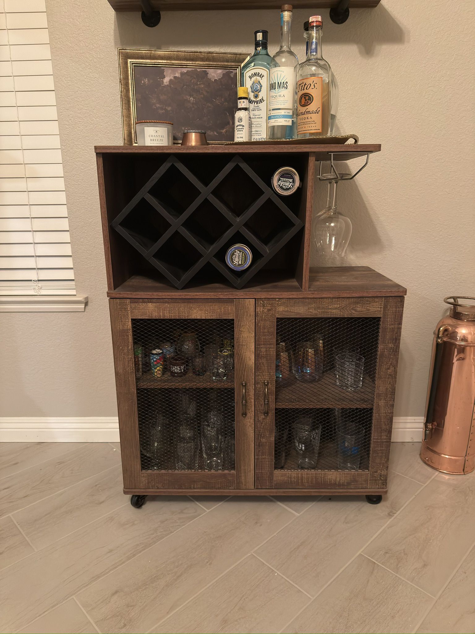 Wooden Bar Cart- Wine Rack