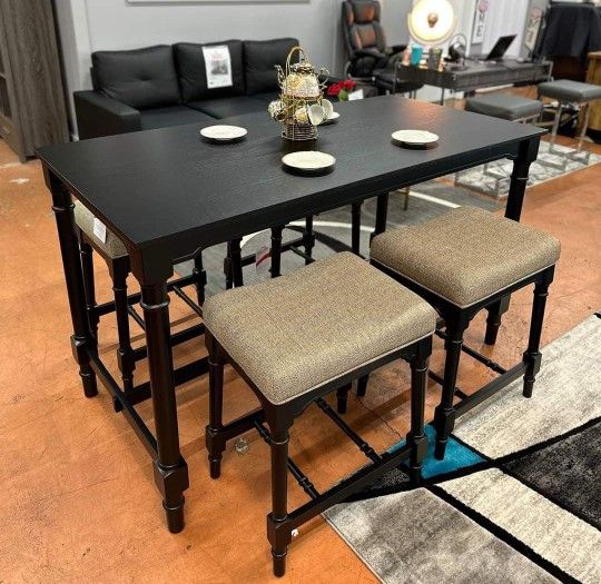 Black 5 Pc Counter Height Dining Set Dining Table and 4 bar stools Martina
