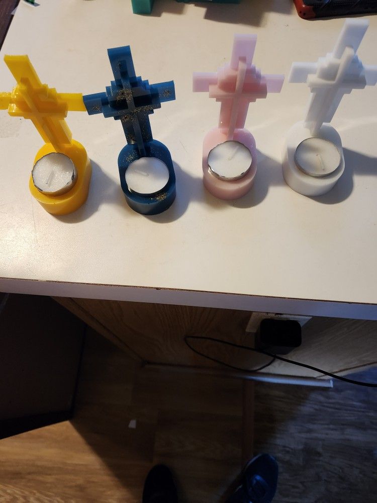 All the molds you see are all handmade by me.I have several different colors. I have angle wings different colors.I have large crosses with the writing that says blessing.Asking 15.00 for them apiece.The small crosses are 10.00 apiece. The butterfly's has angles on them asking 5.00 apiece. Also make droms asking 5.00 apiece.