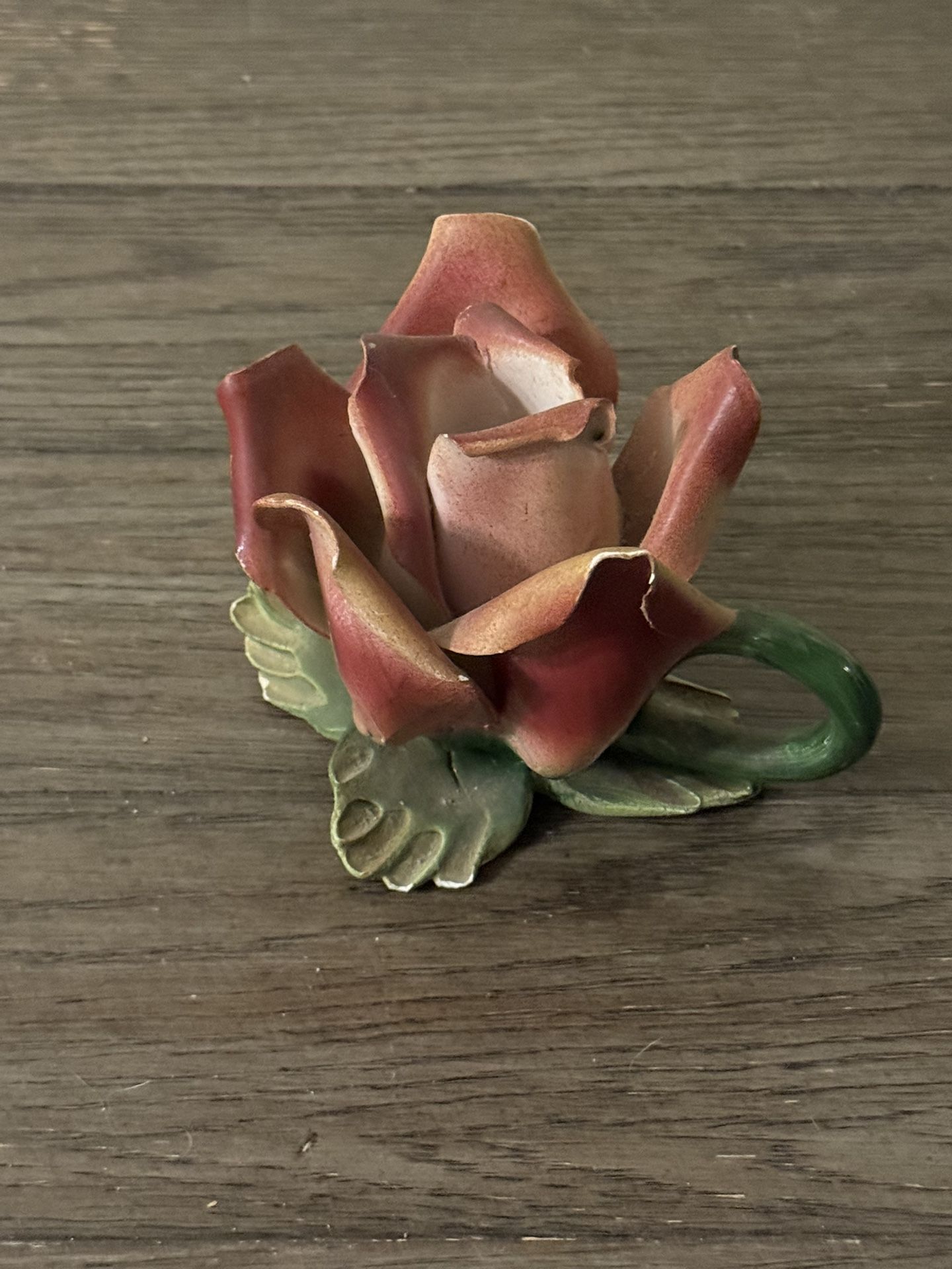 Capodimonte Pink Rose Flower Italian Candle Holder (Italy)