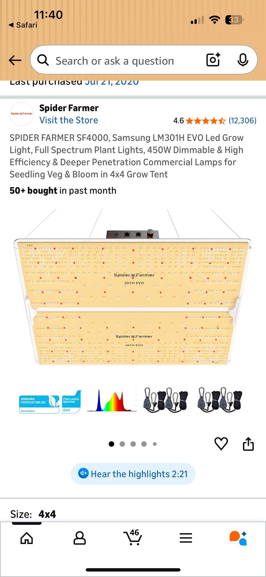 Sf4000 Spider Farmer Led Grow Lamp NIB