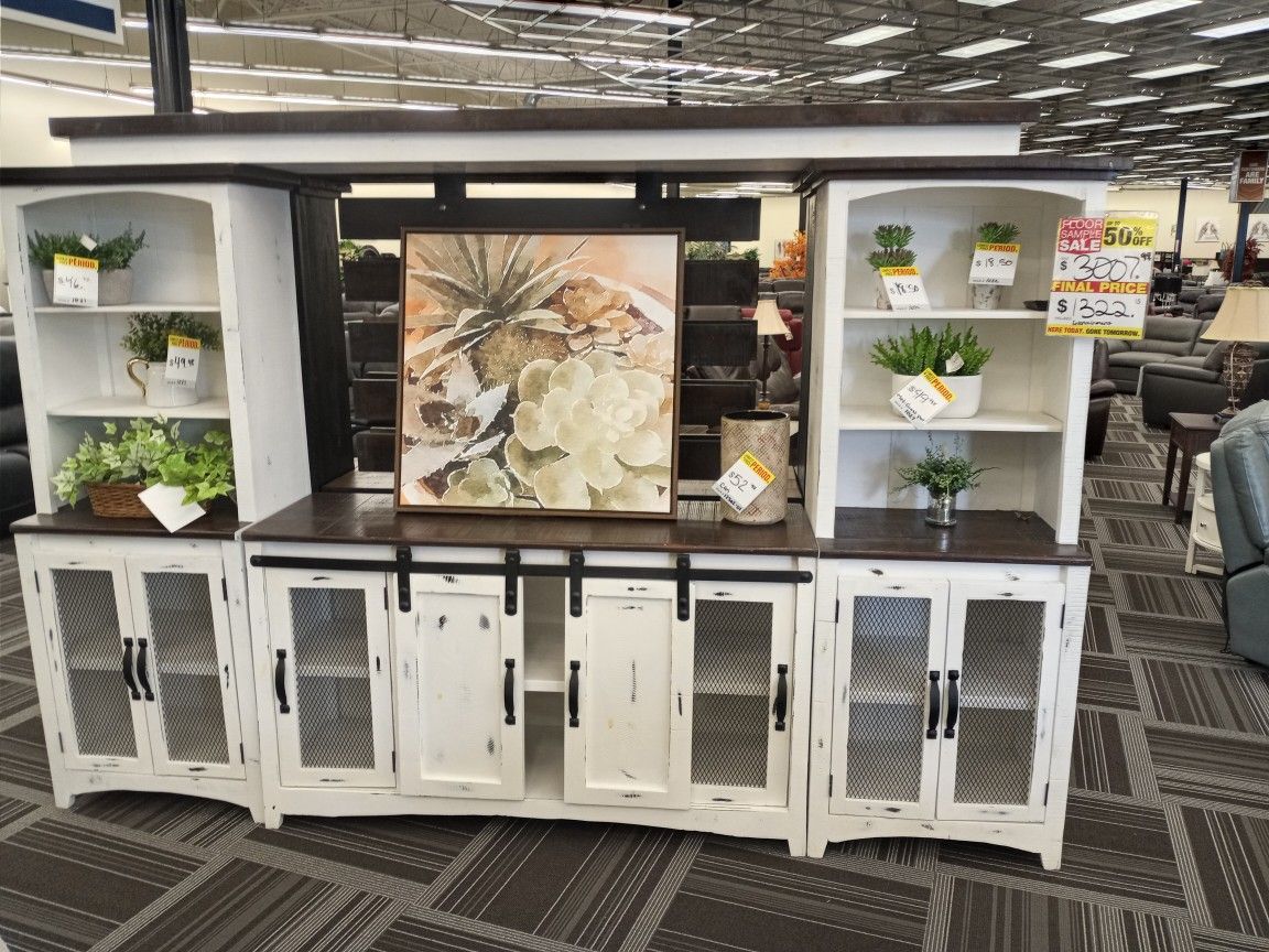 White/ Brown Top Bridge Back Panel L/R Bookcase TV Stand LAST ONE!!! TAKE HOME TODAY!!!