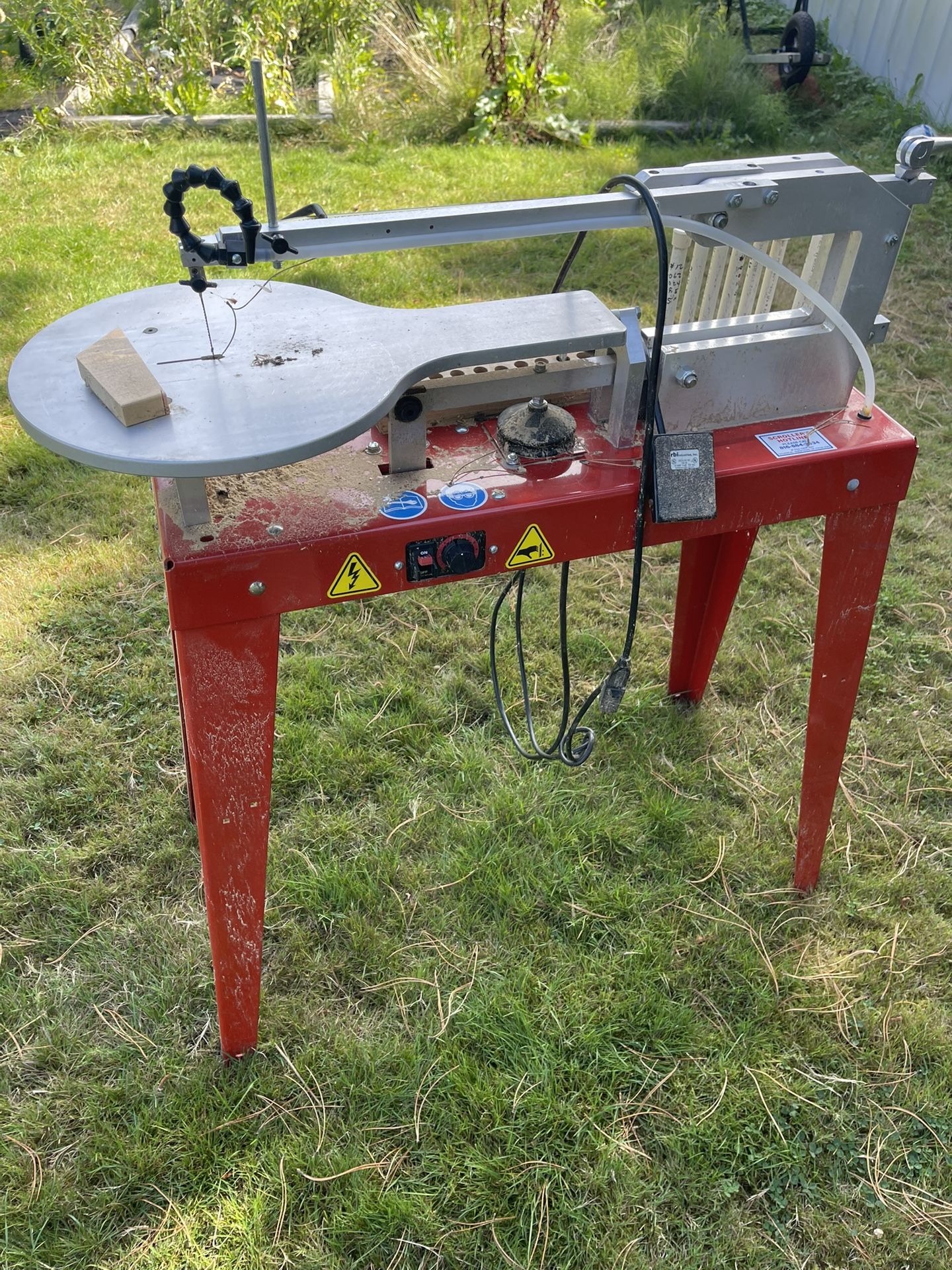 Works well and comes with a sturdy steel stand. Great for detailed woodworking, craft projects, and precision cuts. Includes foot pedal control and adjustable air blower to keep your project clear of dust. I will take the highest offer I get. Just trying to clear some space in my shop