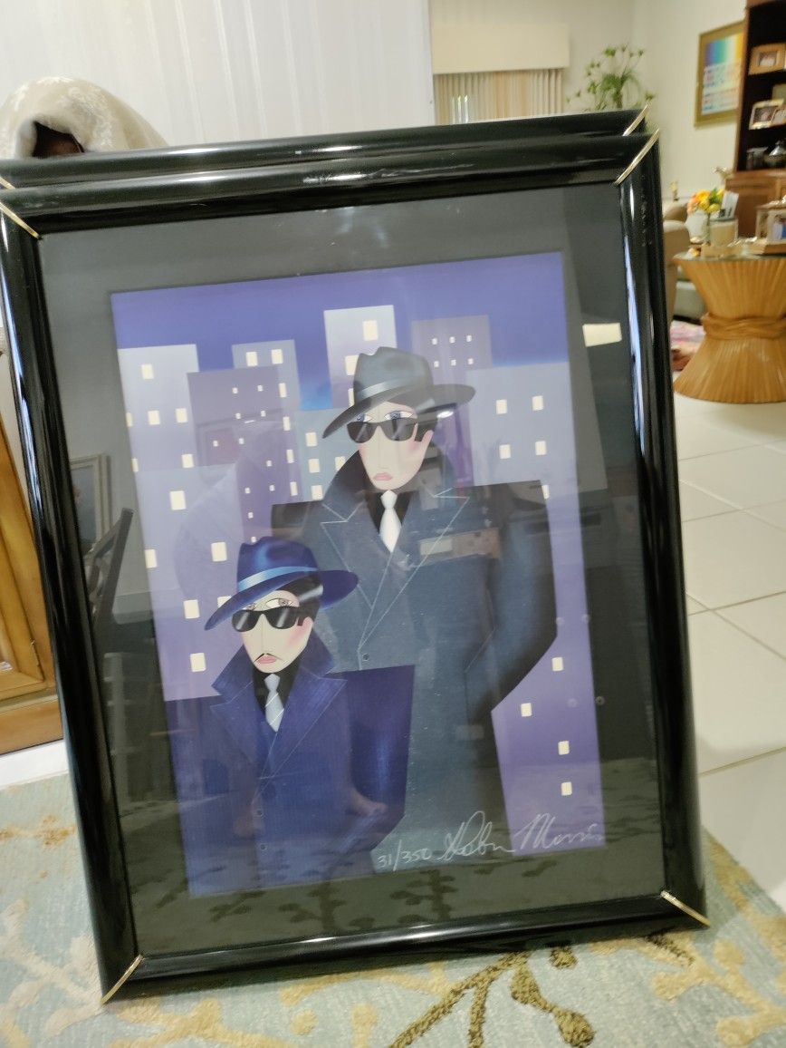 Robin Morris The Gangsters Limited Edition Lithograph on Paper Hand Signed by the Artist Edition 31/350 Custom Matted and Framed Measures 38 1/2" H x 30" Like New Condition