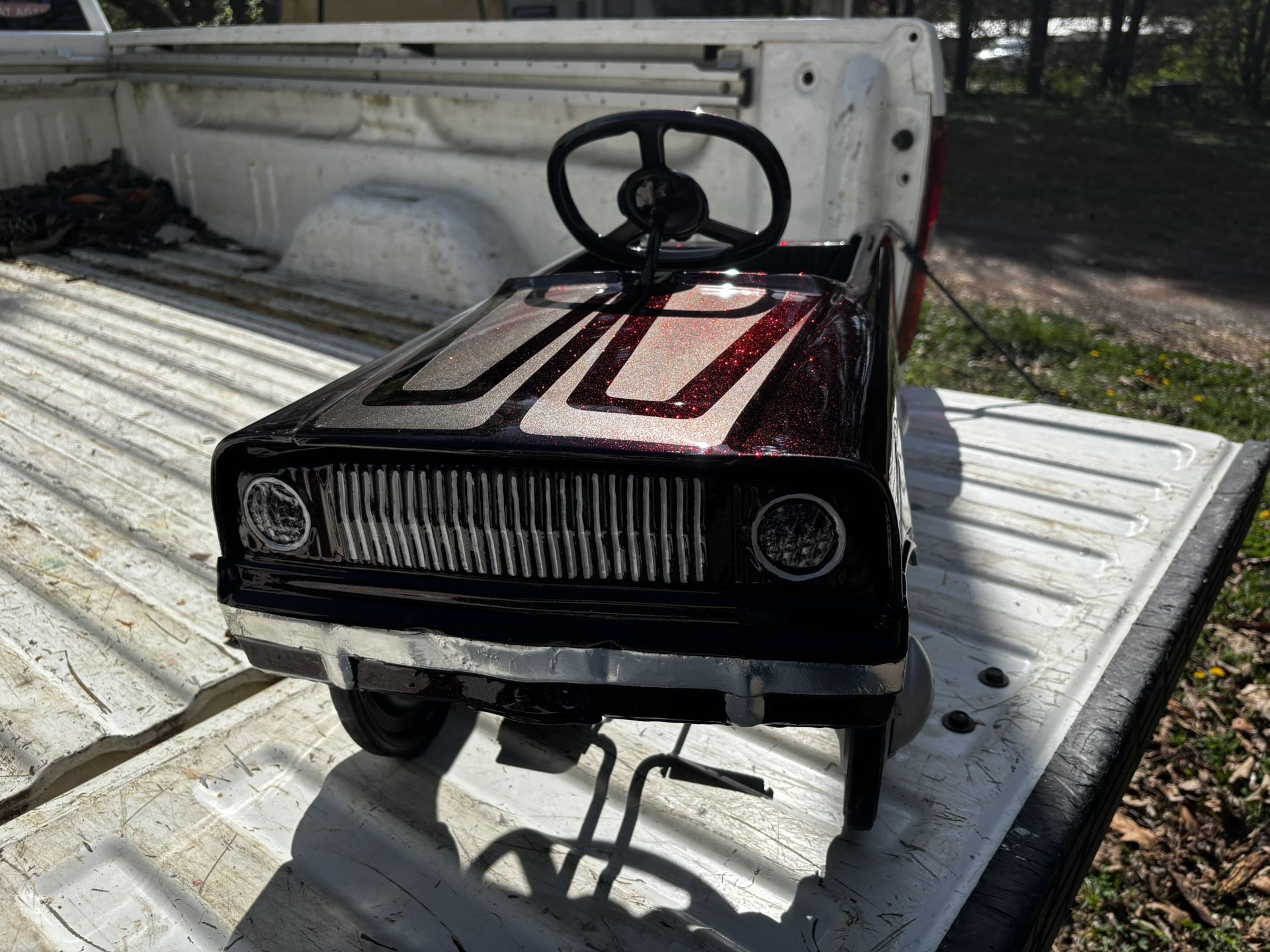 Custom pedal car striped up black with red metal flake beautiful piece sparkles like crazy