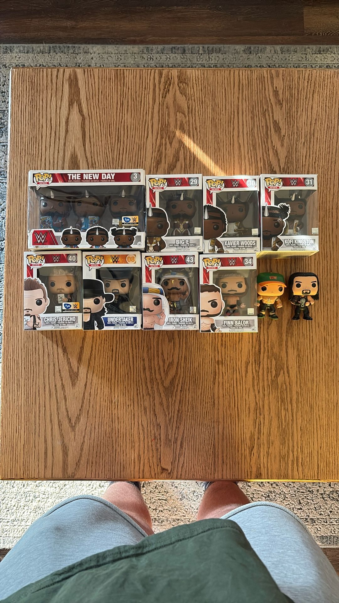 All in good condition New day 3 pack $40 Undertaker $40 All others $15 John Cena and Roman Reigns out of box ( Sorry) $5 each $175 for all