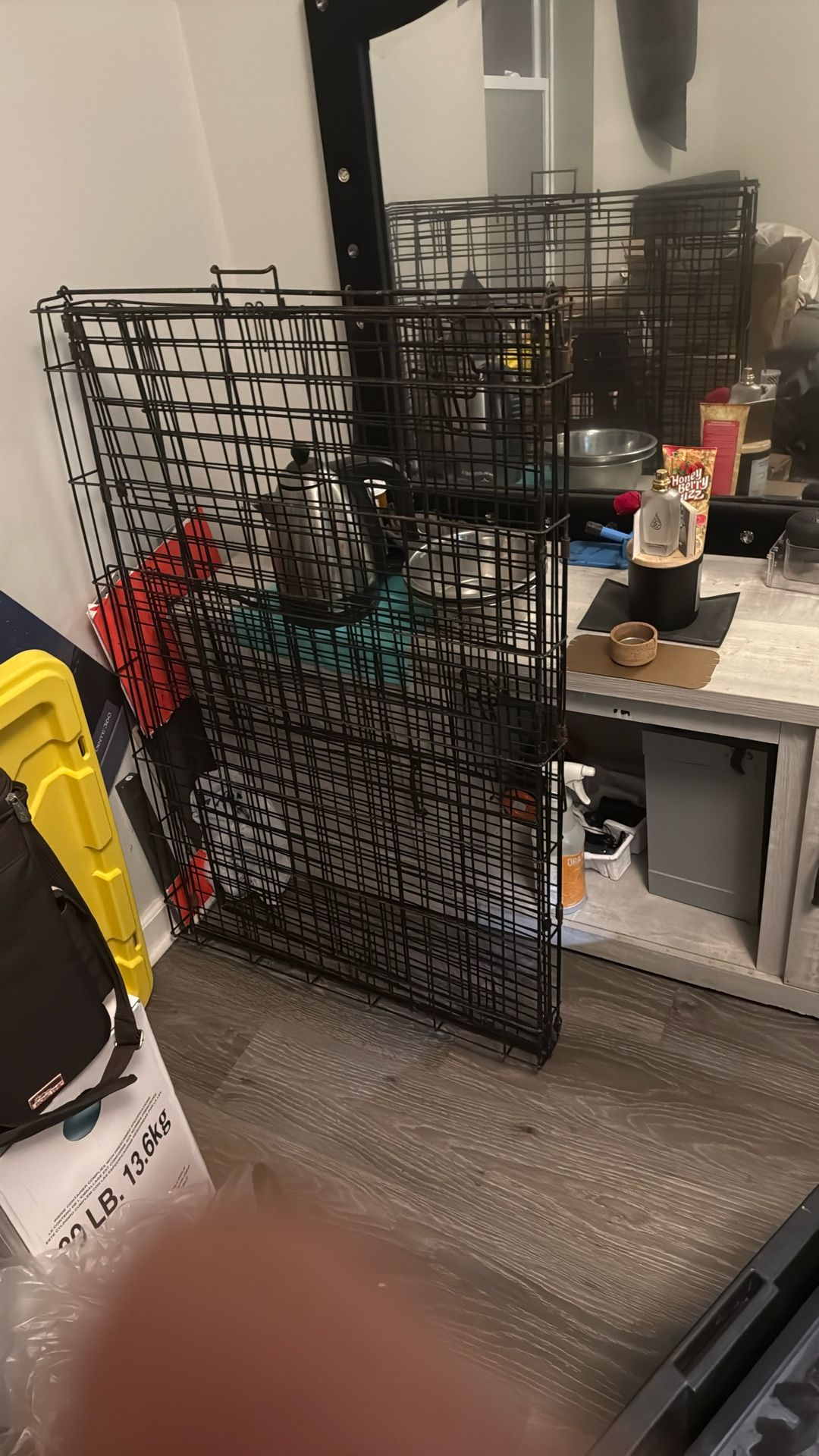 Worn large dog cage.