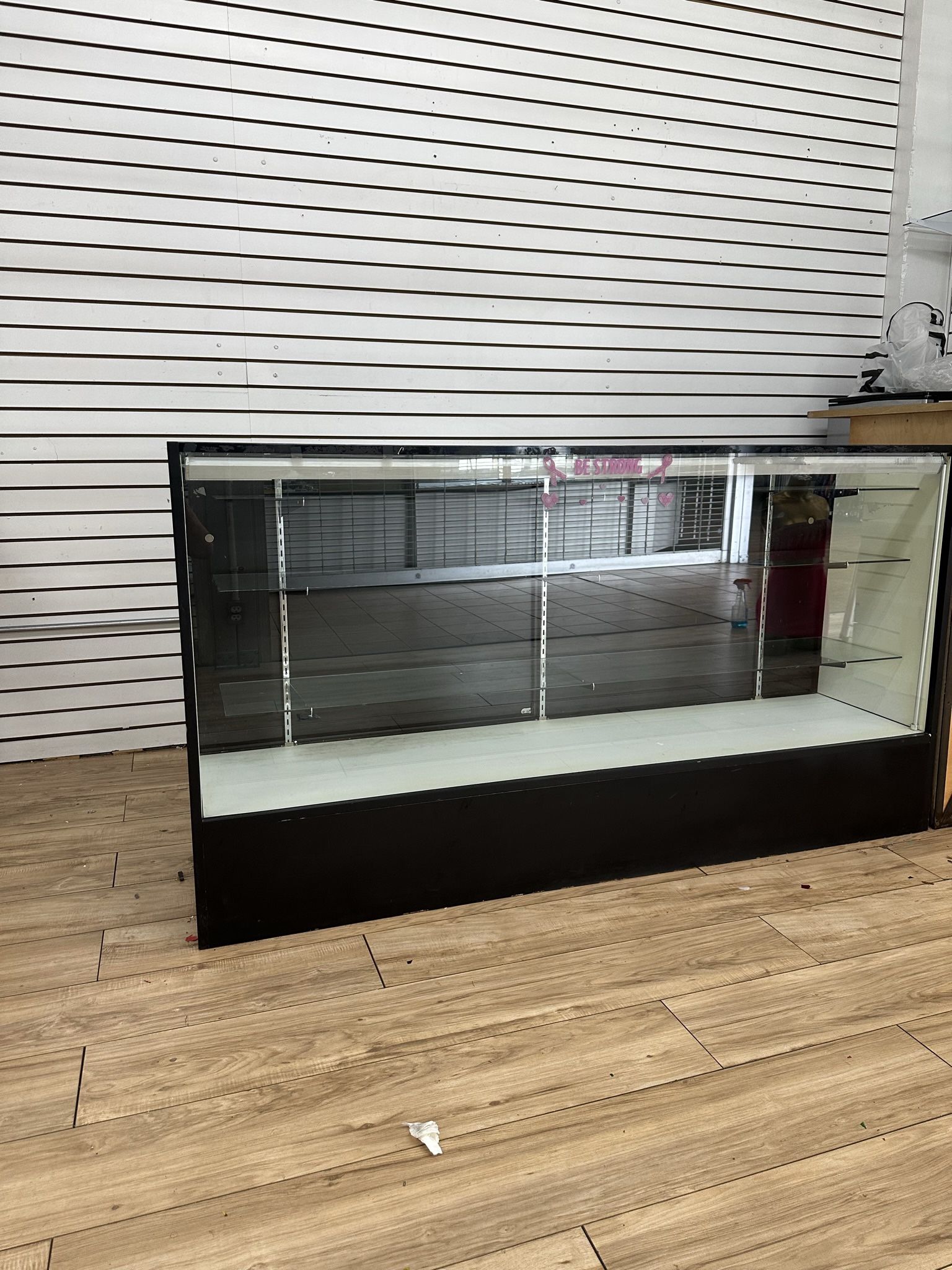 Store closing In good condition Only has small flaw on one corner barely noticeable if glued please see last picture Has lights and locks π 3 glass shelves So 4 levels total Check out my other retail store items for sale!!