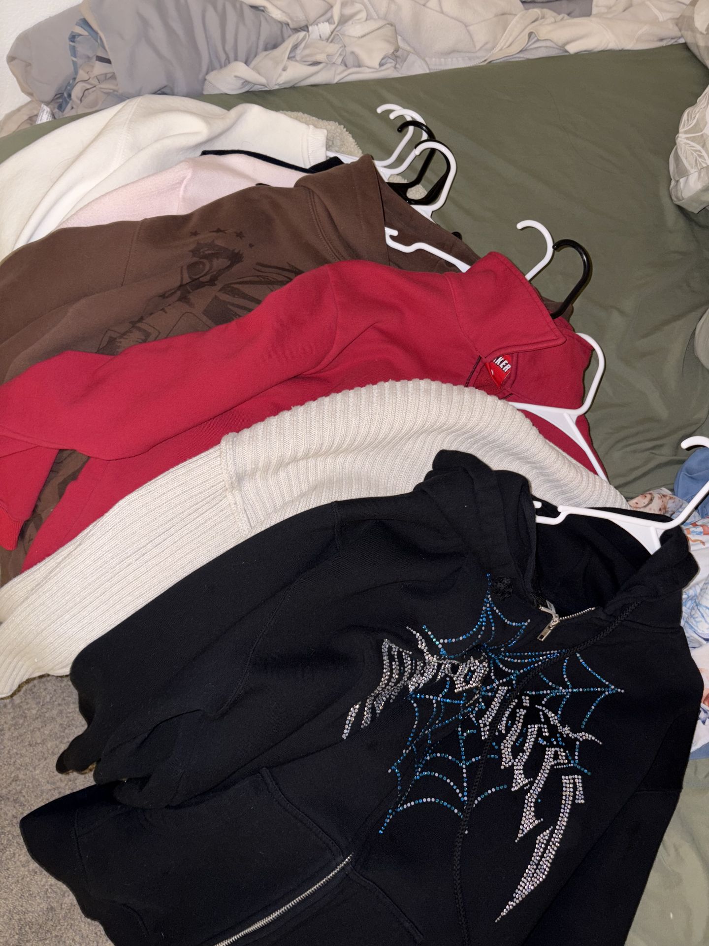 Not all of it is in the picture but its about 10-20 articles of clothing. A bag of folded and washed clothes, some name brand in there levi strauss jacket, PINK hoodie, Pull&Bear etc. some not name brand. Selling as a bundle bag. All rarely worn. Clean and good quality. Pick up preferred but can meet (delivery fee)
