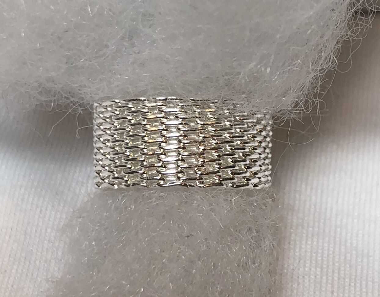 Eli K sterling silver plate 3D wide mesh ring sz 7 Stamped 925 H 6/16” x D 1/16” Soft pliable design...not a rigid band