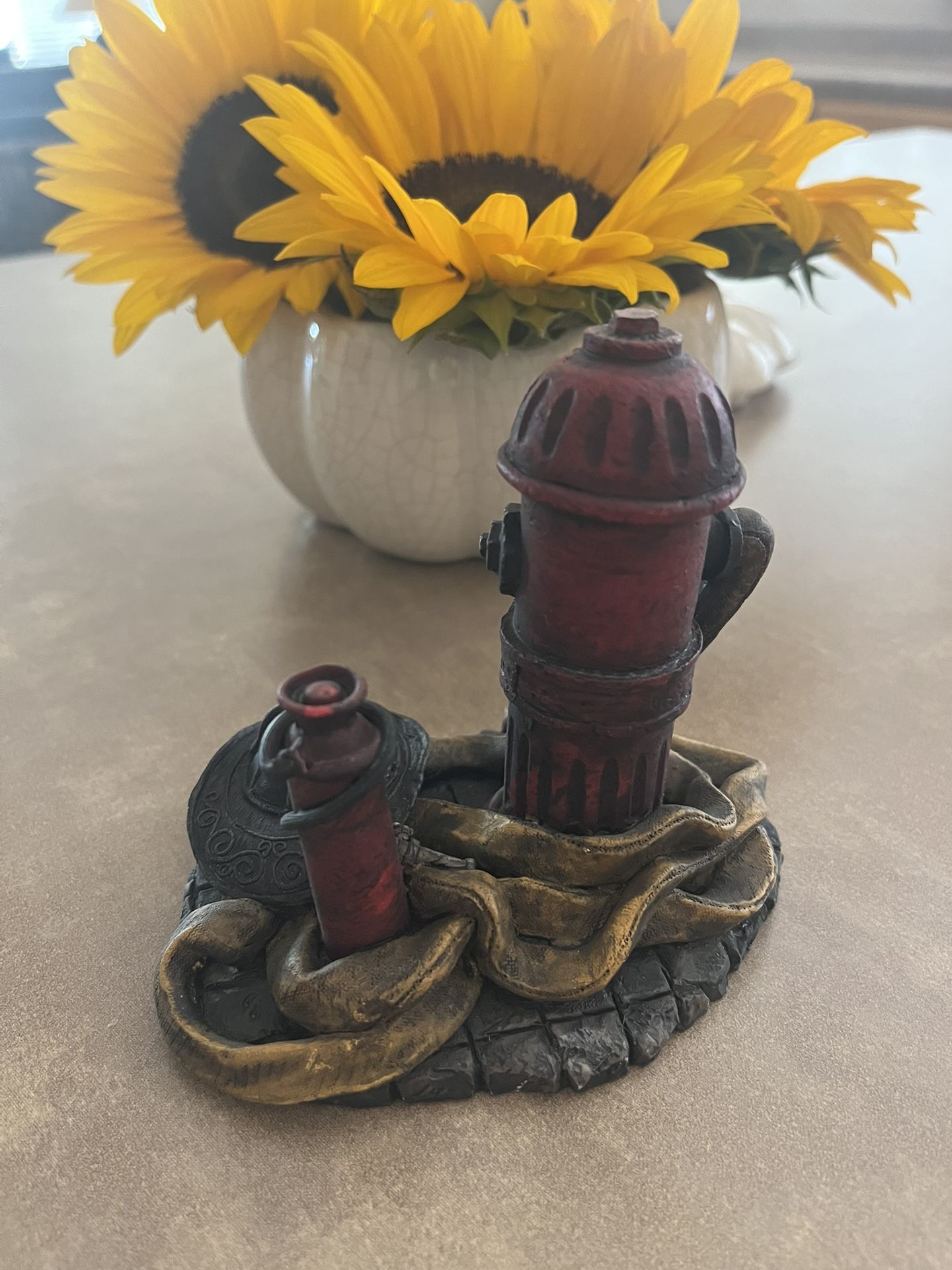 New Vintage Resin Fire Hydrant - 5” x 5” It originally was a set of 2. I only have one. Add a touch of charm to your home with this decorative red and gold fire hydrant figurine. Perfect for enhancing your fire department accents collection.
