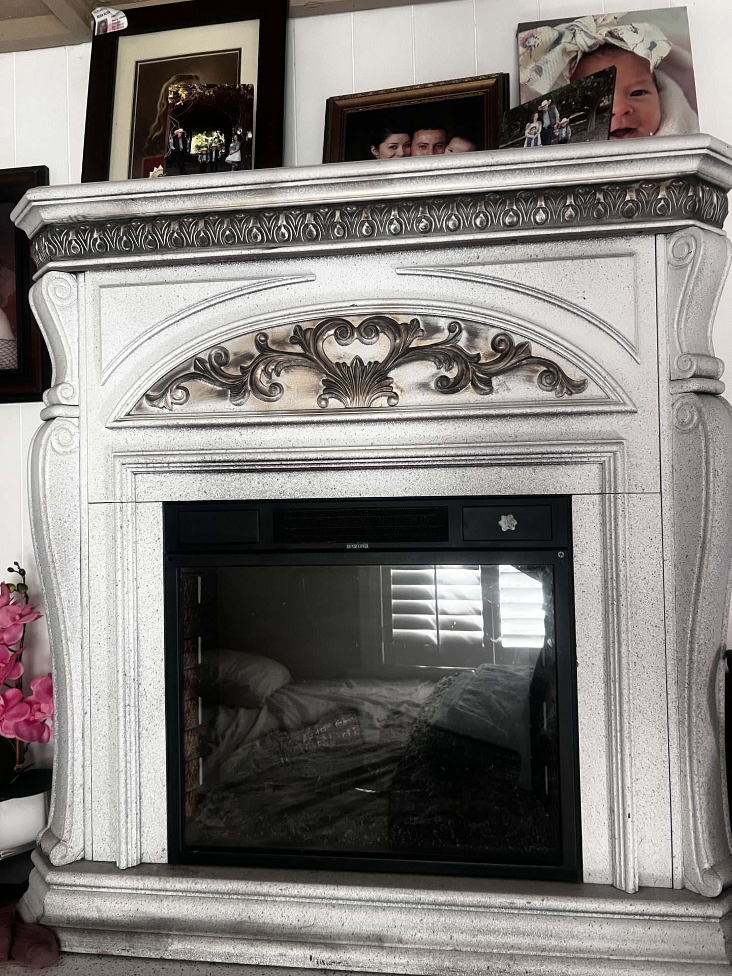 Good condition working electrical chimney painted white with gold looks ππ½ good