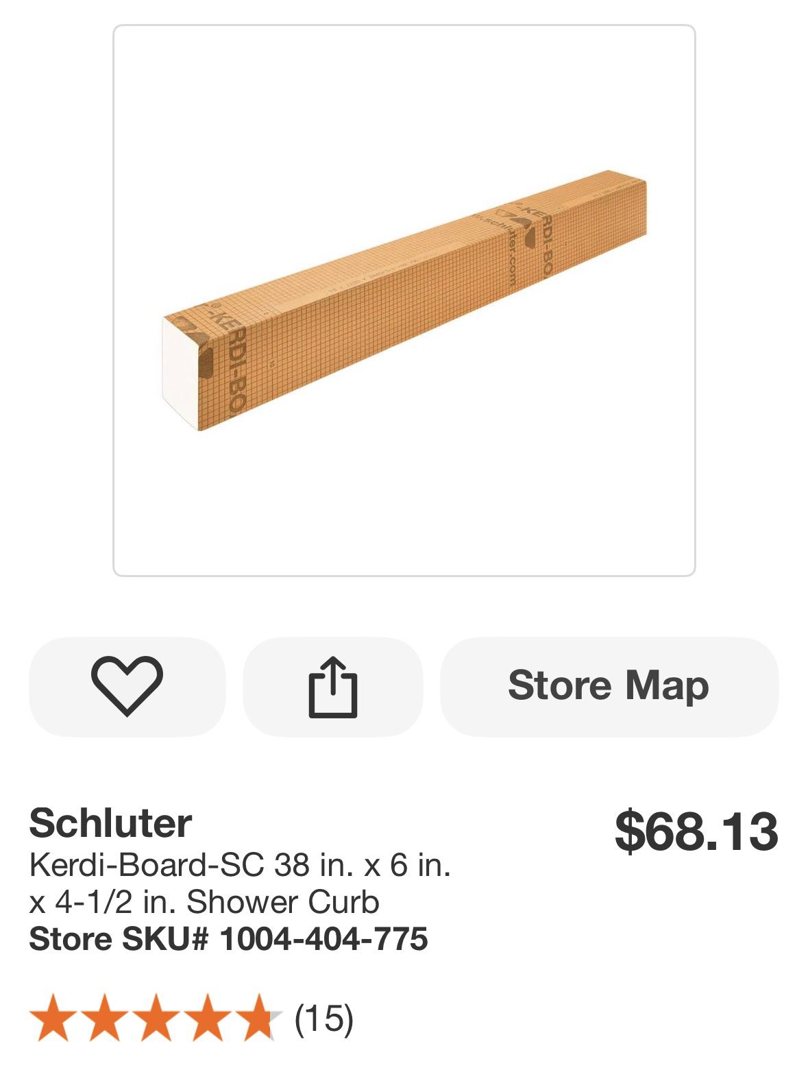 New open box Schluter Kerdi-Board-SC 38 in x 6 in x 4-1/2 in Shower Curb. $40 OBO.