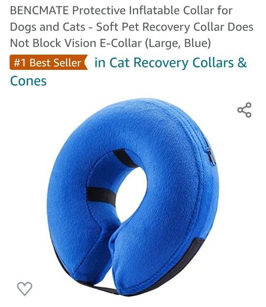 BENCMATE Protective Inflatable Collar for Dogs and Cats - Soft Pet Recovery Collar Does Not Block Vi