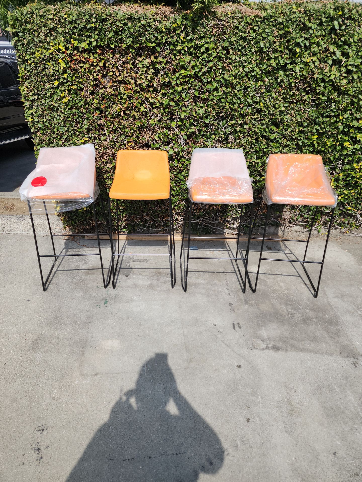4 bars stool in tangerine orange leather and black frame, they are really nice for your home for a small kind of bar table, for your break room at your office. #stool#chairs#bar#office#desk. I have more chairs for sale check my other offers hablo español. The price its for all 4