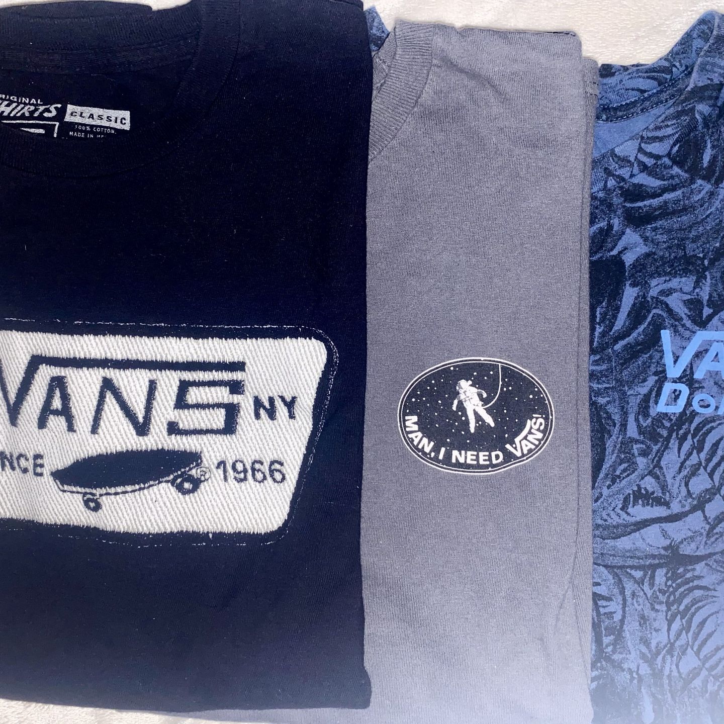 Lot of 3 Vans classic t-shirts /black, full patch T-shirt Sz.medium, charcoal gray”Man I need Vans” t shirt Sz. Medium,Tropical blue Camo Tshirt Sz. large "CASH or CASH APP Only".. (Local Pickup Only.. No Shipping)