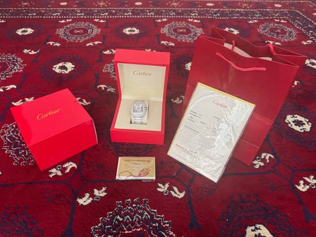 moissanite Cartier Watch for Sale , With Box & Papers Selling a Cartier moissanite Watch in very good condition. Authenticity: Passes diamond tester Includes: Cartier box and paperwork Condition: open box , only used for the pictures Price: Negotiable This is a luxury piece that combines timeless elegance with authentic craftsmanship. Serious buyers only.