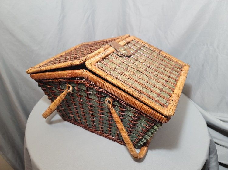 Beautiful Green Picnic Basket! Measures 16"L x 11 1/4"W x 10"H