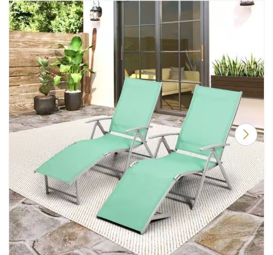2-Piece Aluminum Adjustable Outdoor Chaise Lounge in Green